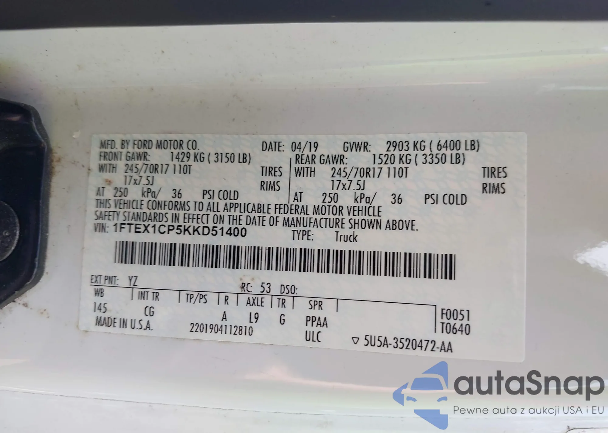 VIN: 1FTEX1CP5KKD51400