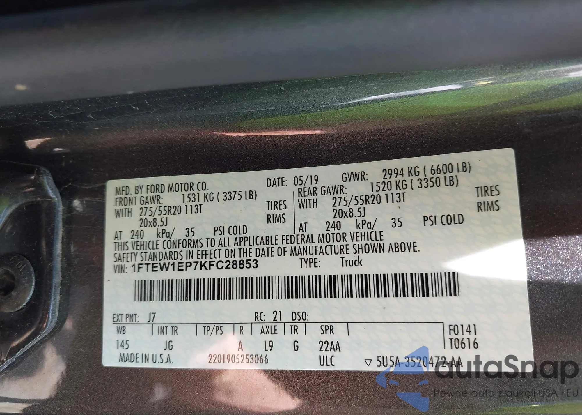 VIN: 1FTEW1EP7KFC28853