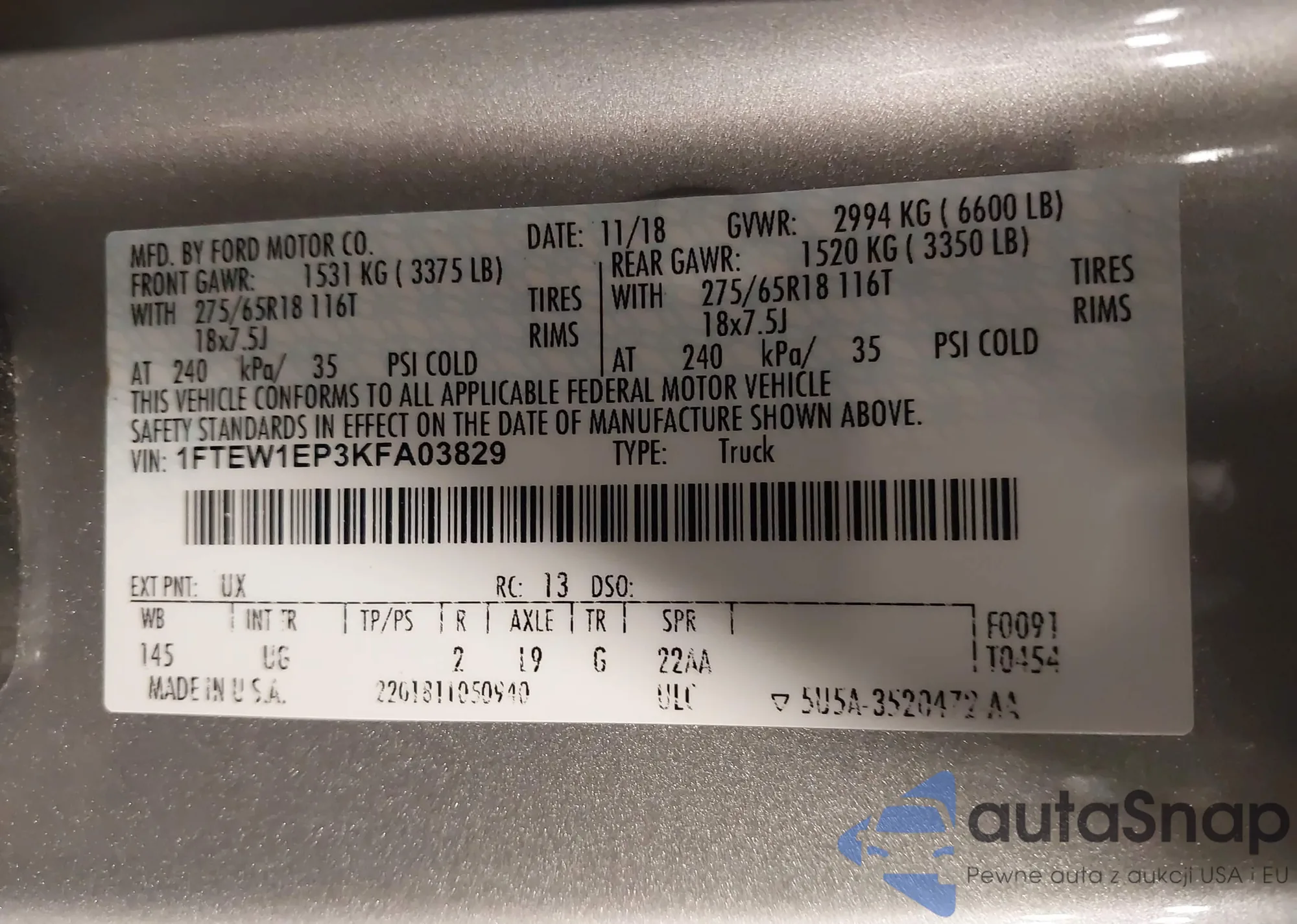 VIN: 1FTEW1EP3KFA03829