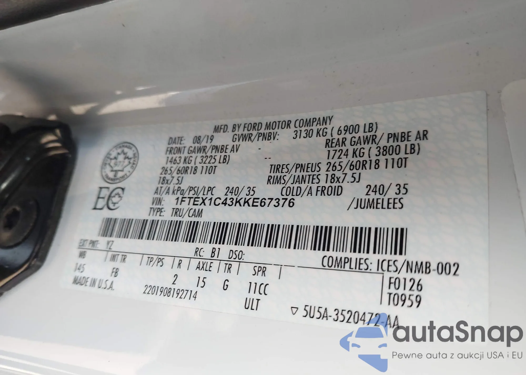 VIN: 1FTEX1C43KKE67376