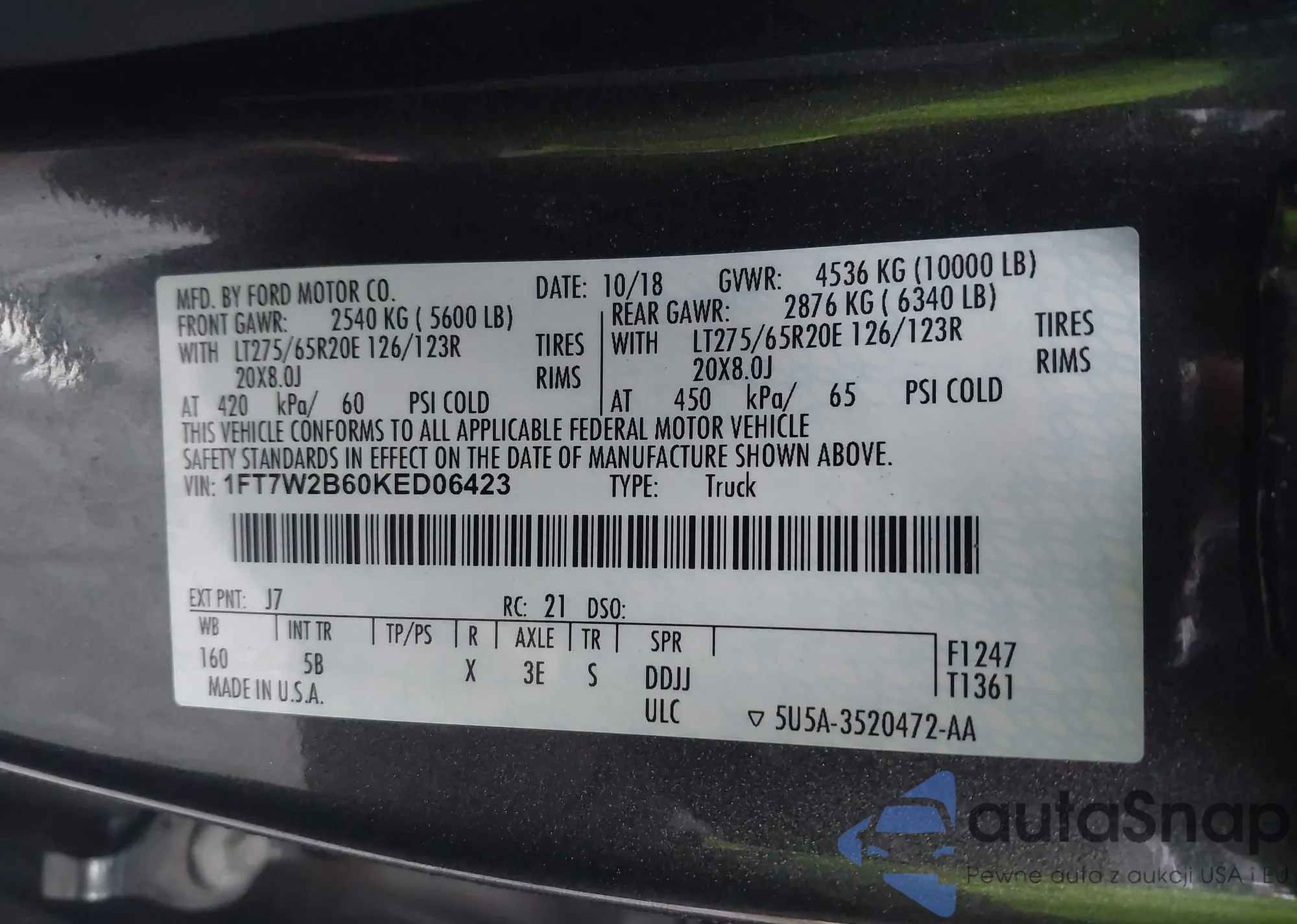 Автомобиль Ford F250 2019 (VIN 1FT7W2B60KED06423) ранее не участвовал в торгах. Документы чистые, пробег соответствует или ниже среднего по рынку. Продаётся страховой компанией — рекомендуем покупку. Доставка в порт займет около 6–8 недель.