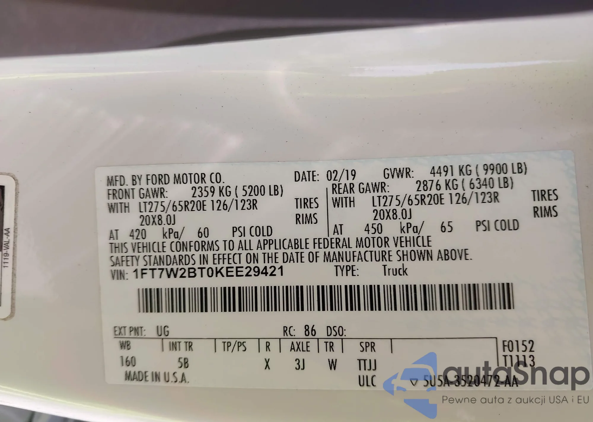VIN: 1FT7W2BT0KEE29421
