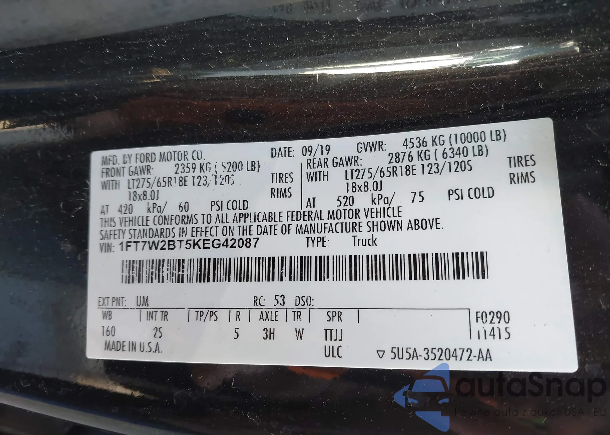 Автомобиль Ford F250 2019 (VIN 1FT7W2BT5KEG42087) ранее не участвовал в торгах. Документы чистые, пробег соответствует или ниже среднего по рынку. Продаётся страховой компанией — рекомендуем покупку. Доставка в порт займет около 6–8 недель.