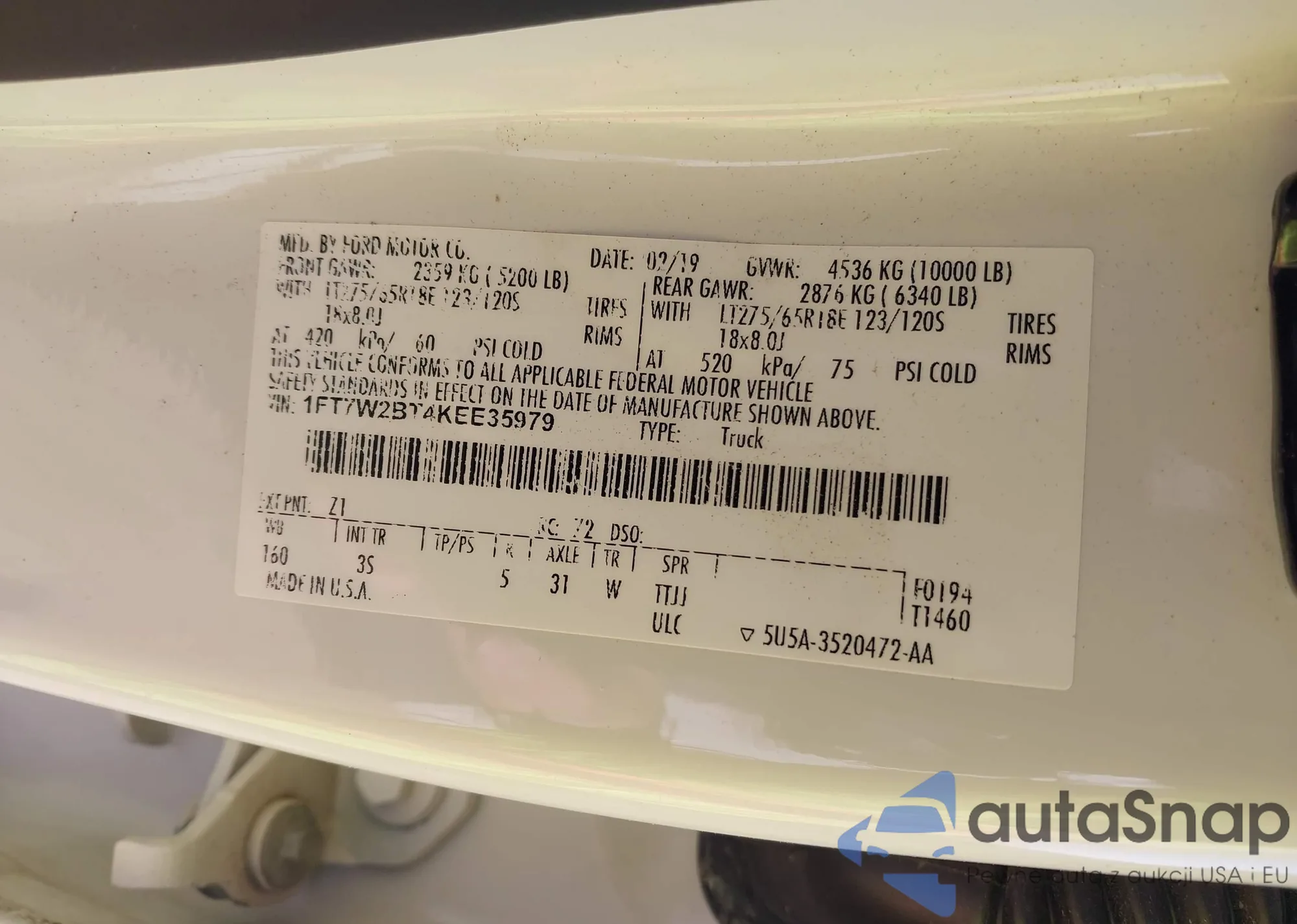 VIN: 1FT7W2BT4KEE35979