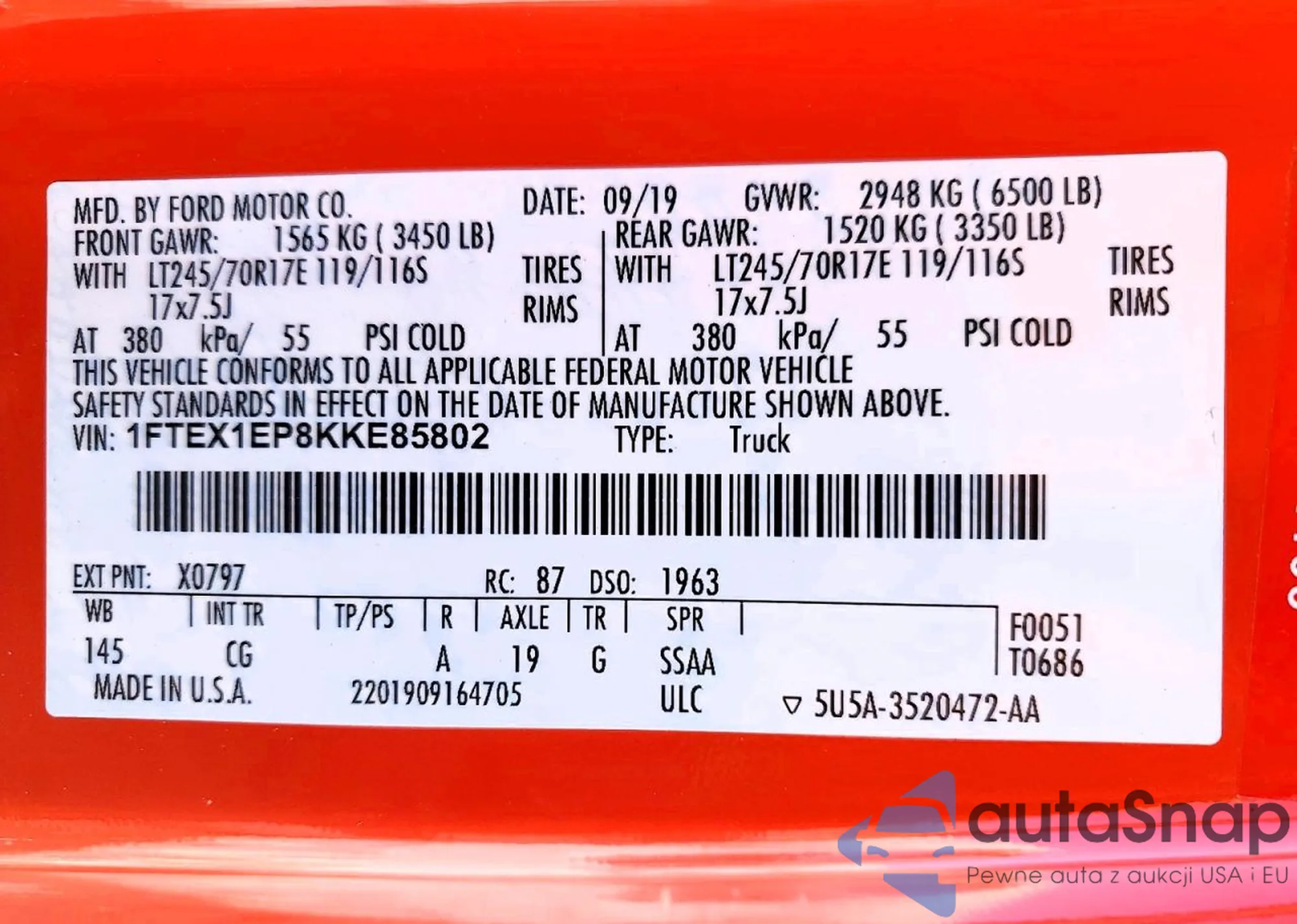 Автомобиль Ford F-150 2019 (VIN 1FTEX1EP8KKE85802) ранее не участвовал в торгах. Документы чистые, пробег соответствует или ниже среднего по рынку. Продаётся страховой компанией — рекомендуем покупку. Доставка в порт займет около 6–8 недель.