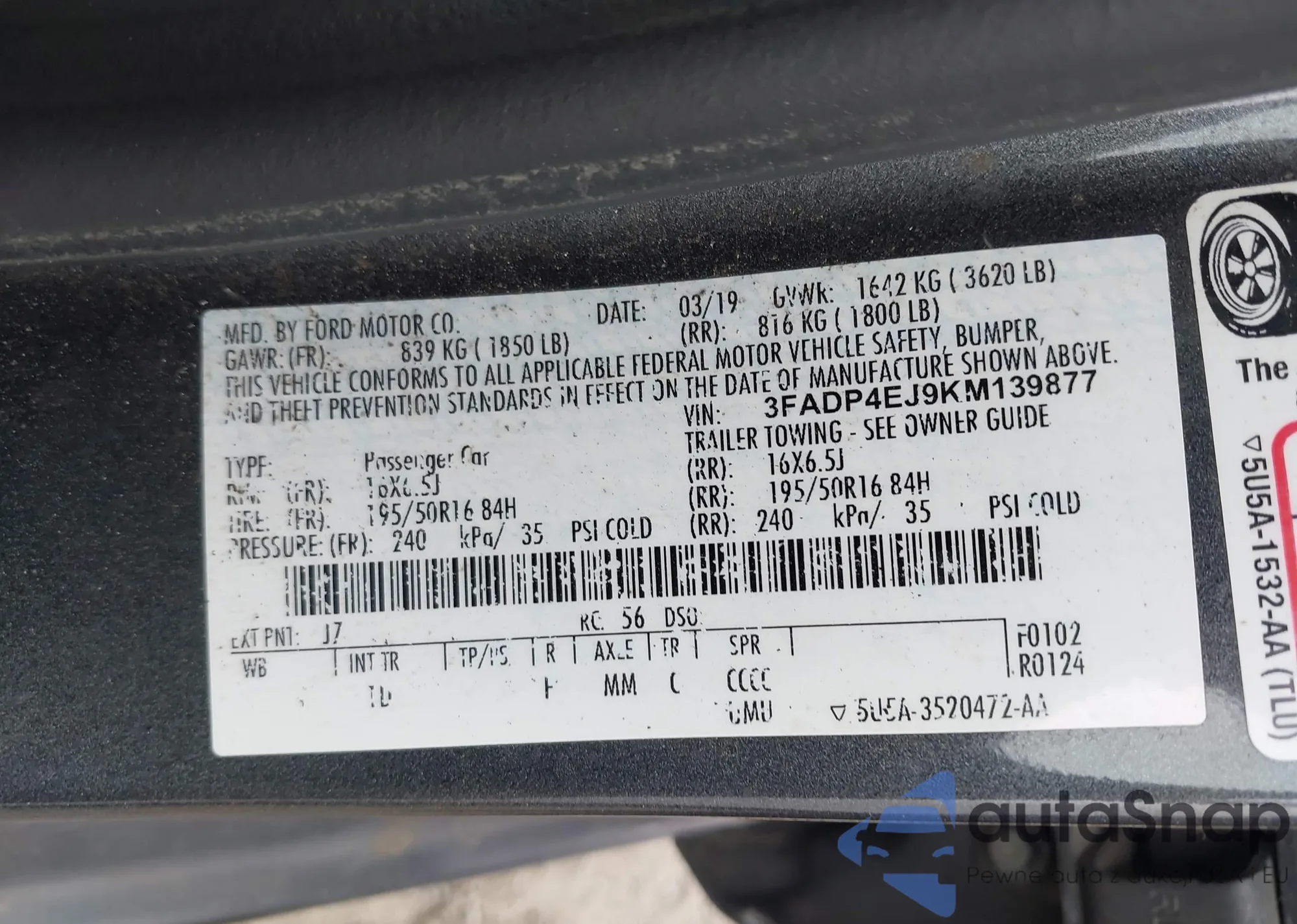VIN: 3FADP4EJ9KM139877