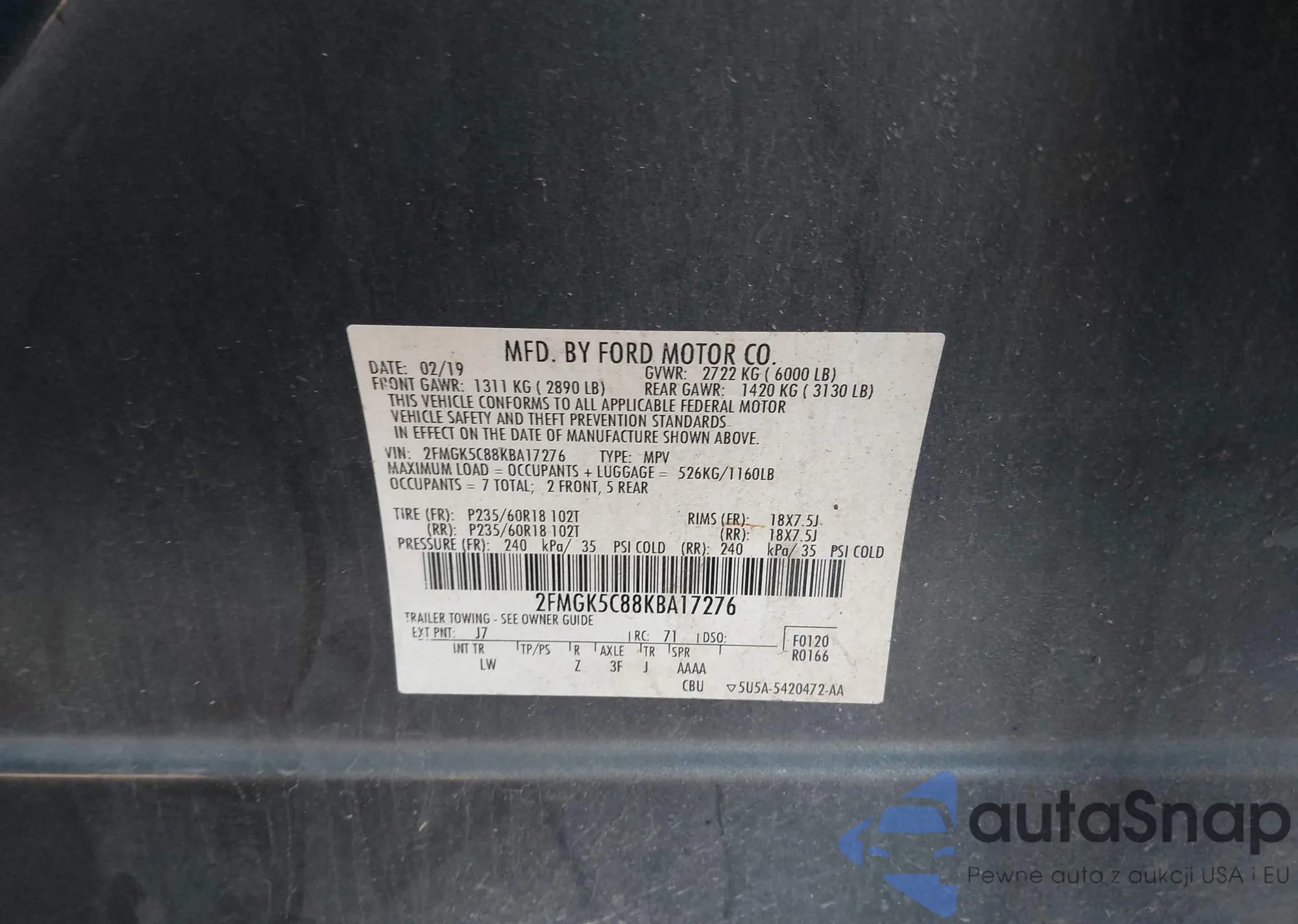 Автомобиль Ford Flex 2019 (VIN 2FMGK5C88KBA17276) имеет документы, препятствующие регистрации. Могут возникнуть сложности при экспорте и регистрации. Обратитесь к экспертам AutaSnap для поиска альтернатив.