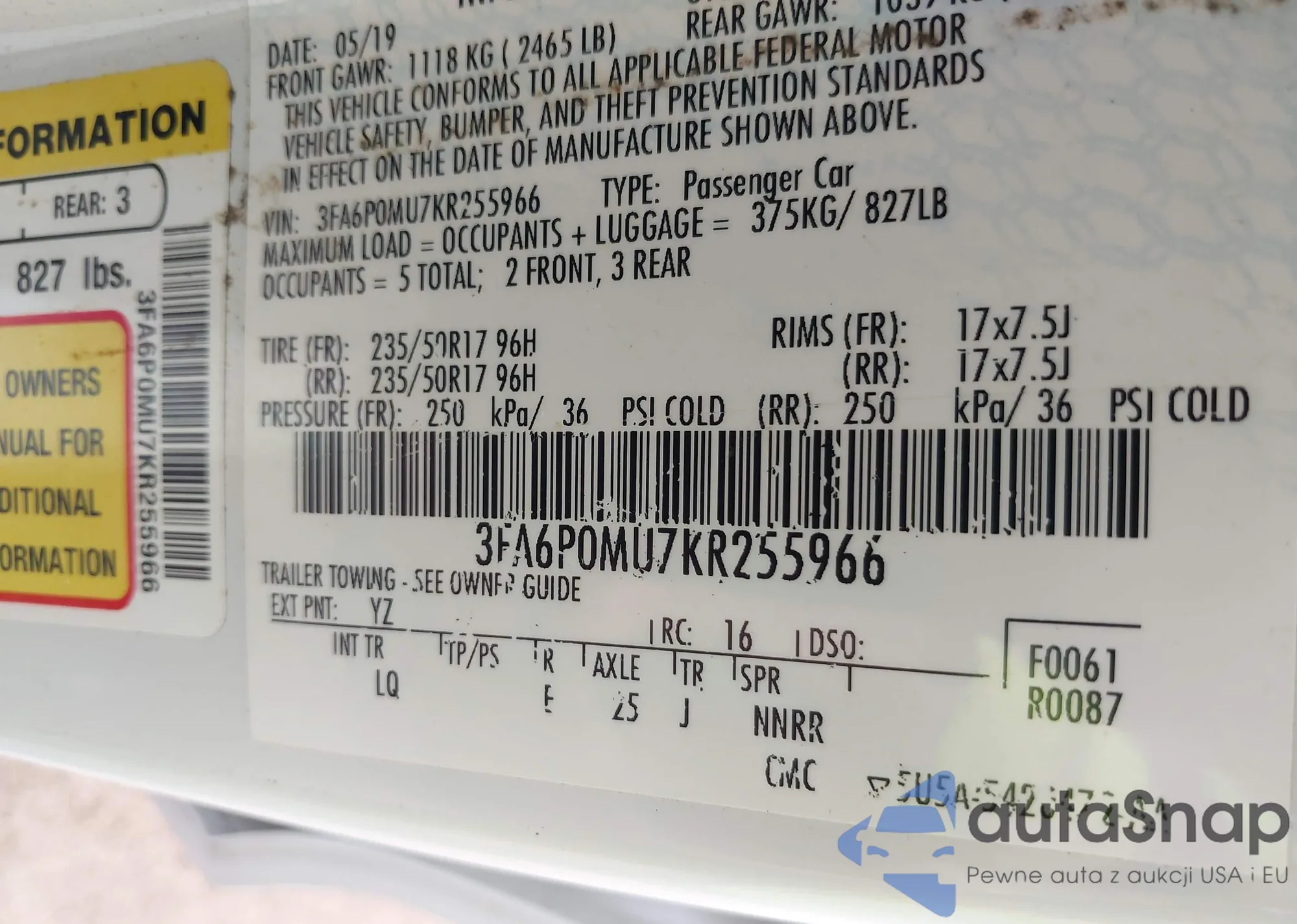 VIN: 3FA6P0MU7KR255966