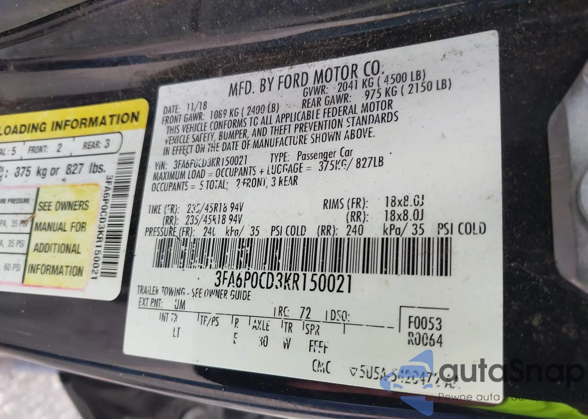 VIN: 3FA6P0CD3KR150021