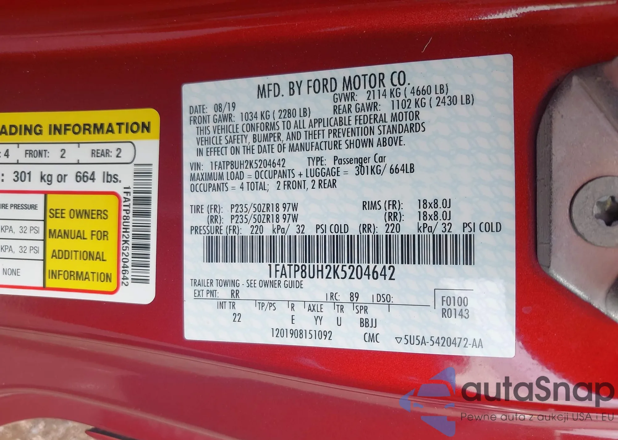 VIN: 1FATP8UH2K5204642