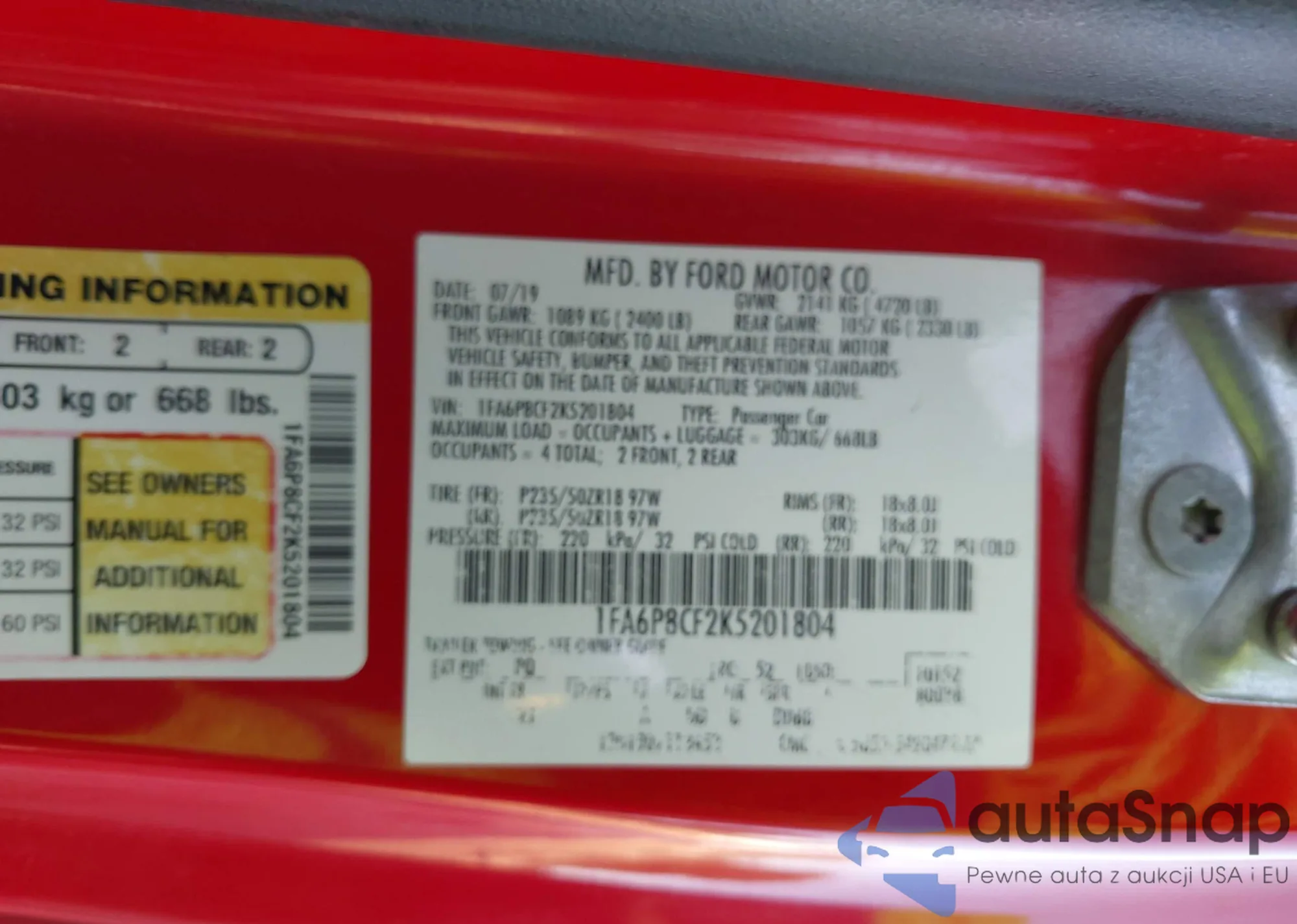 • VIN: 1FA6P8CF2K5201804