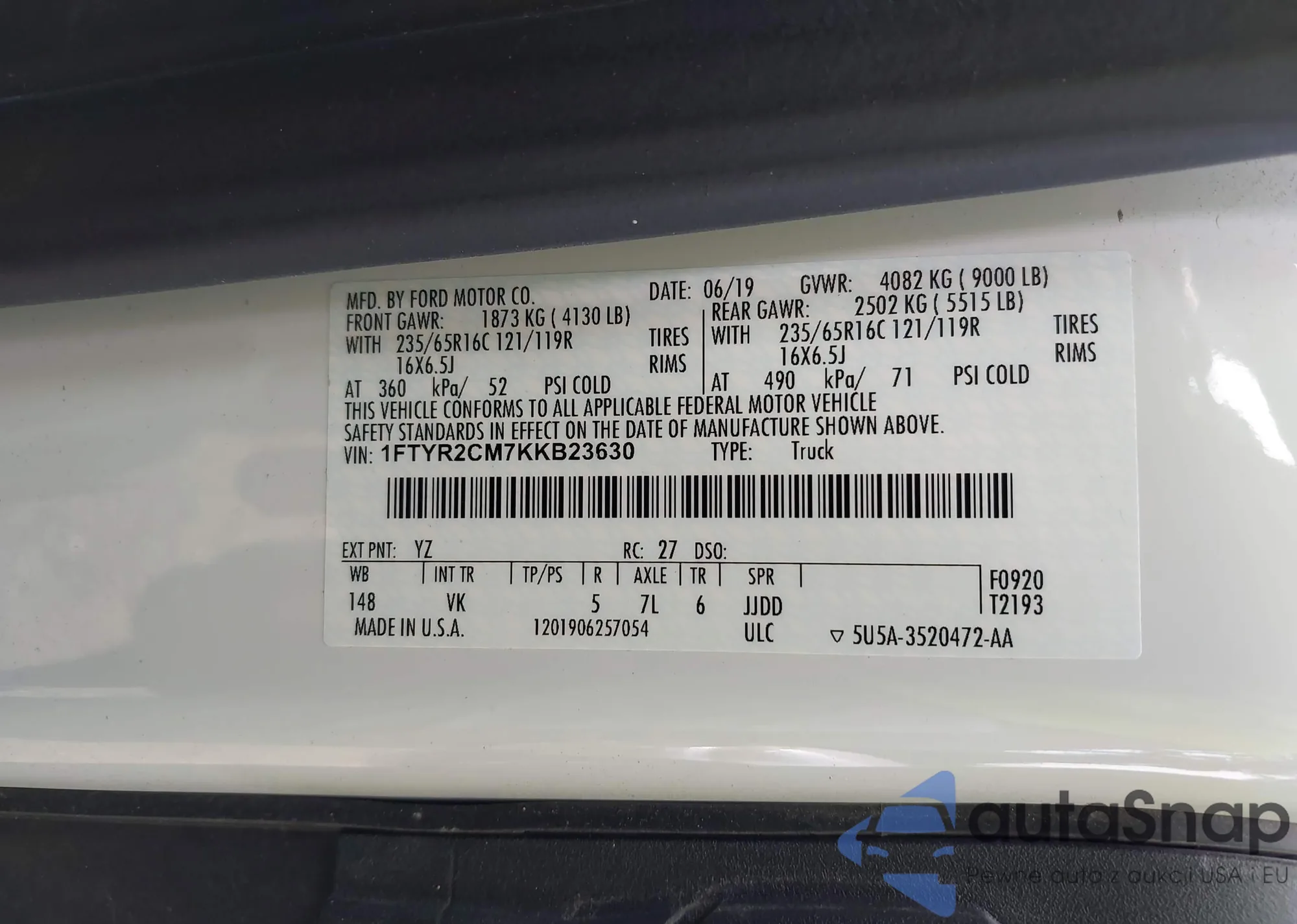 VIN: 1FTYR2CM7KKB23630