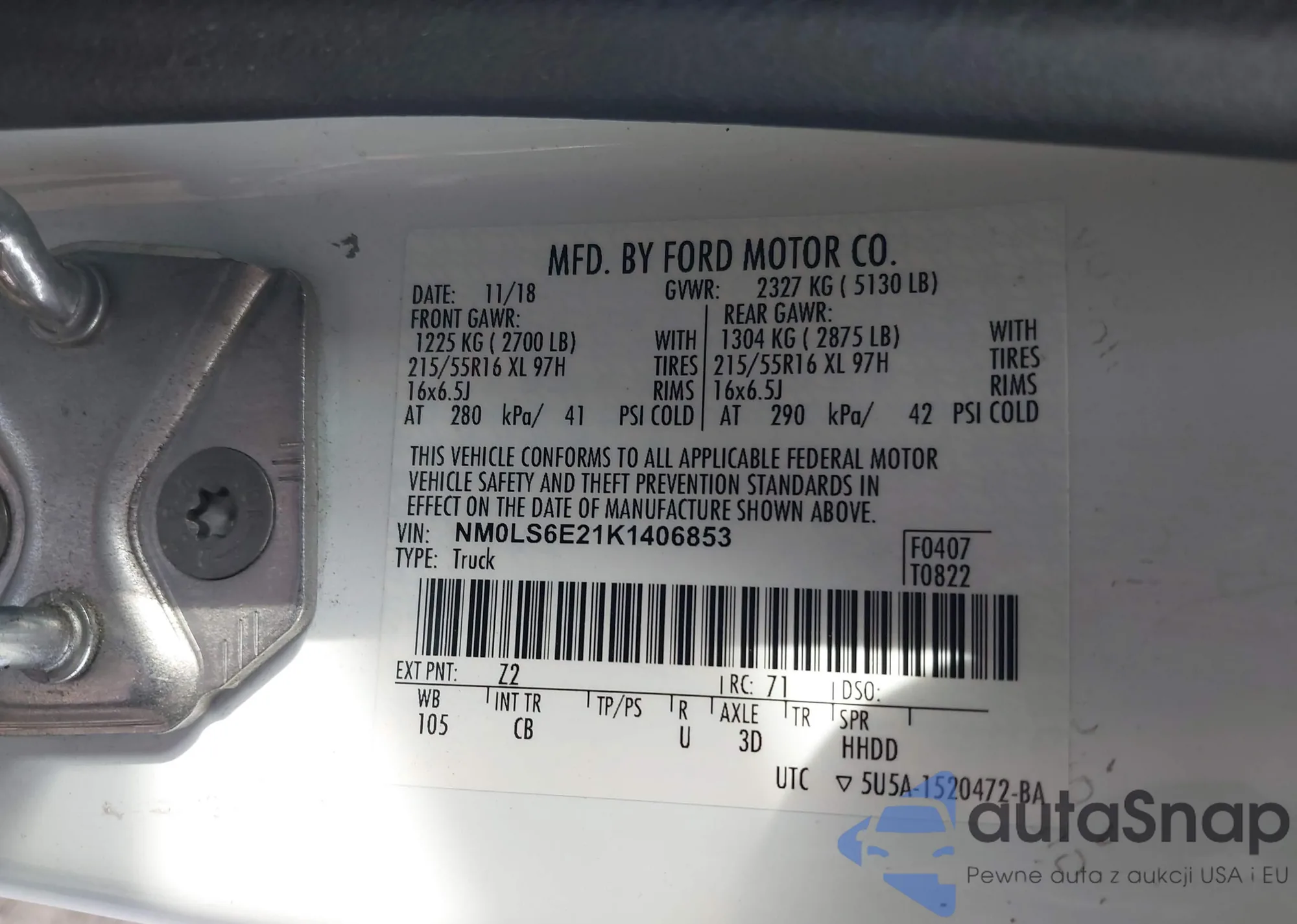 Автомобиль Ford Transit 2019 (VIN NM0LS6E21K1406853) ранее не участвовал в торгах. Документы чистые, пробег соответствует или ниже среднего по рынку. Продаётся страховой компанией — рекомендуем покупку. Доставка в порт займет около 6–8 недель.