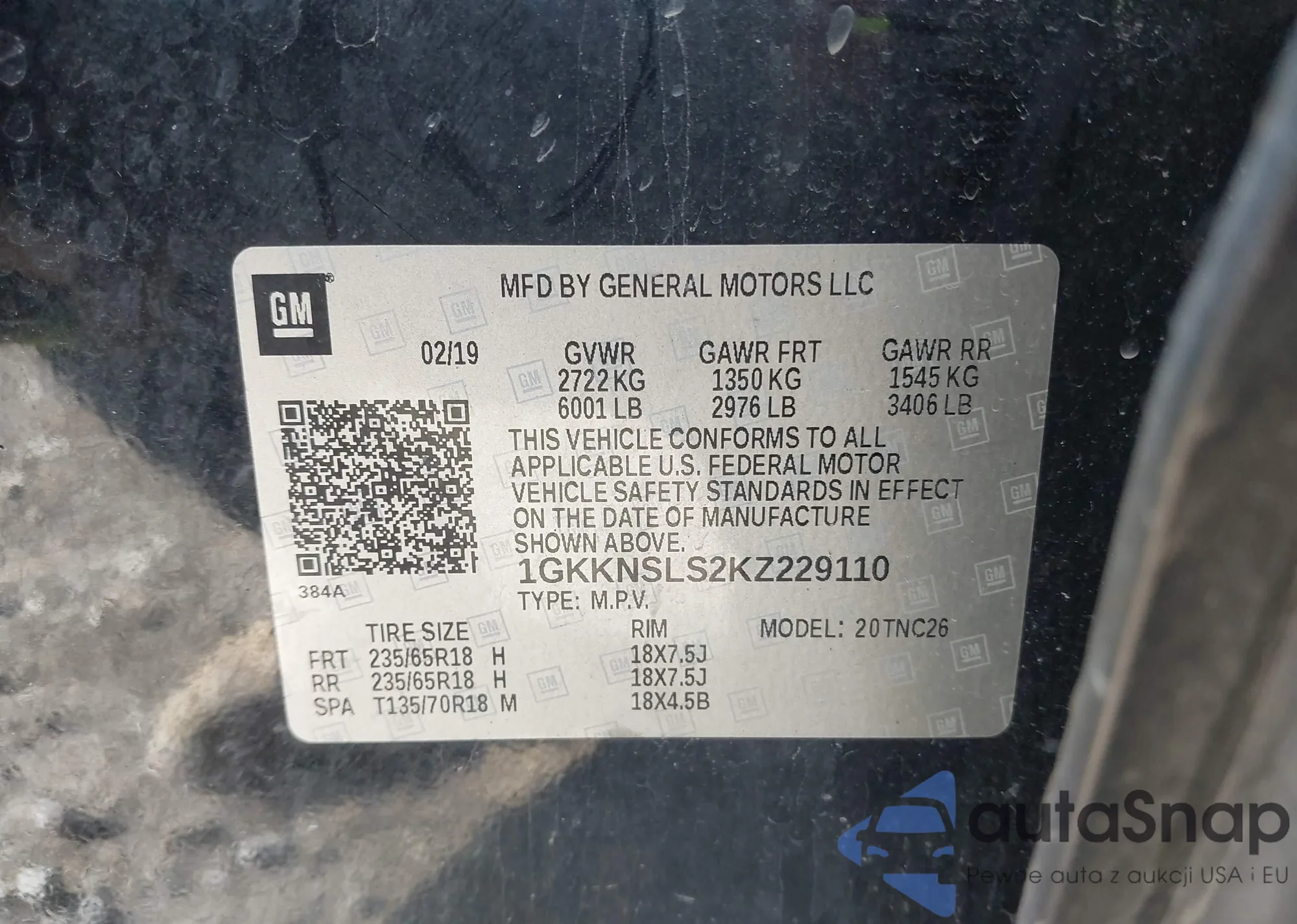 VIN: 1GKKNSLS2KZ229110