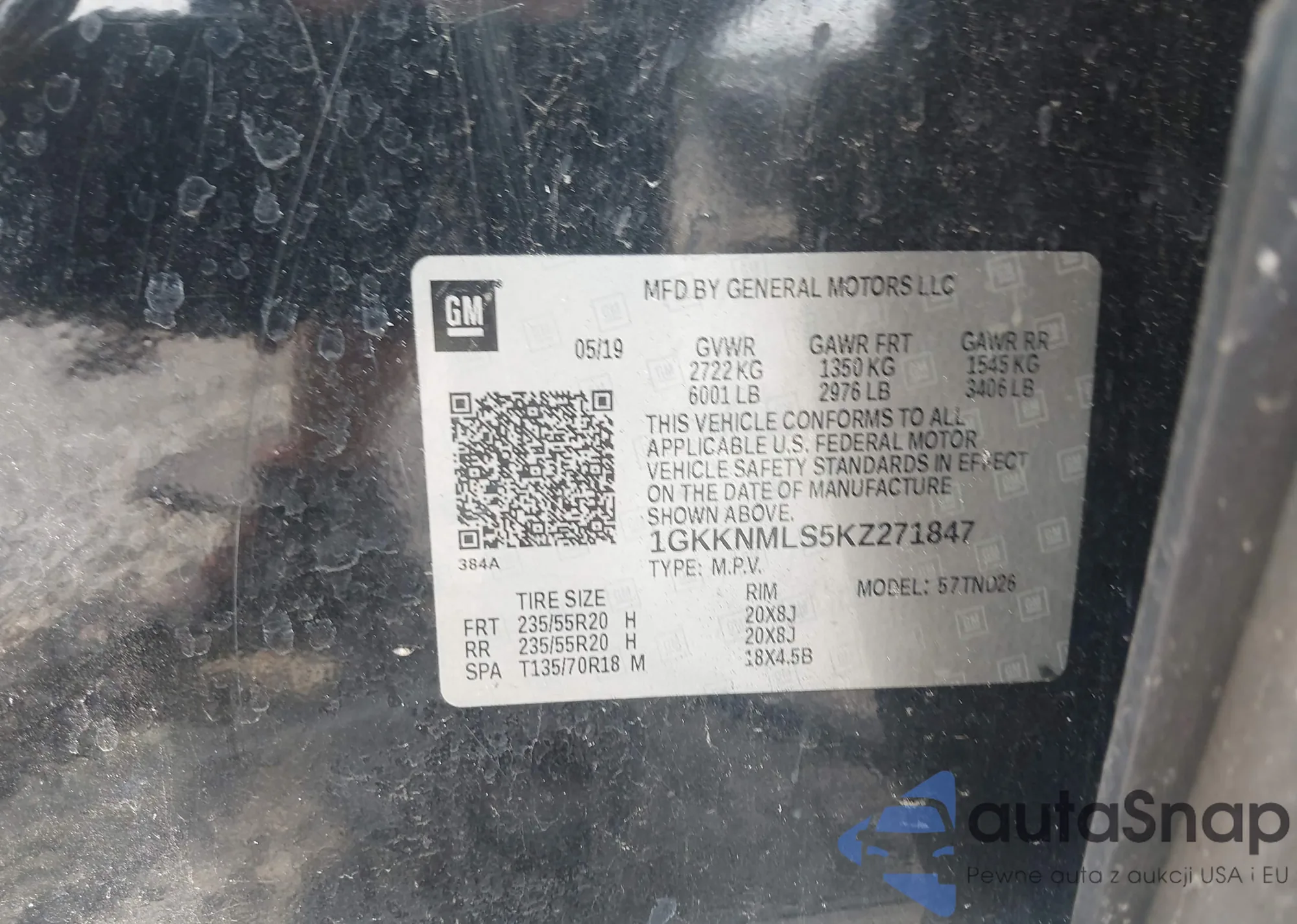 • VIN: 1GKKNMLS5KZ271847