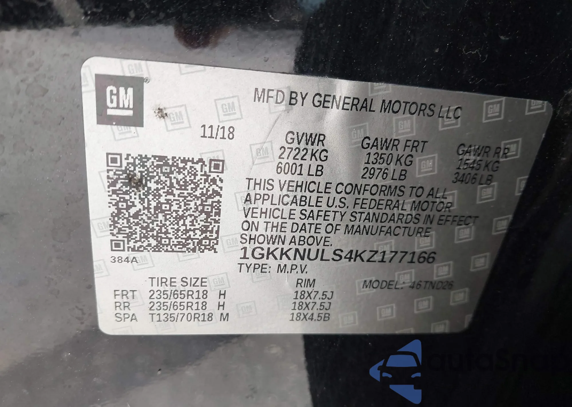 VIN: 1GKKNULS4KZ177166