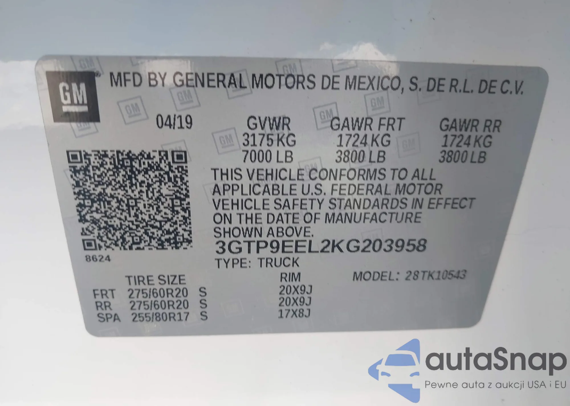 VIN: 3GTP9EEL2KG203958