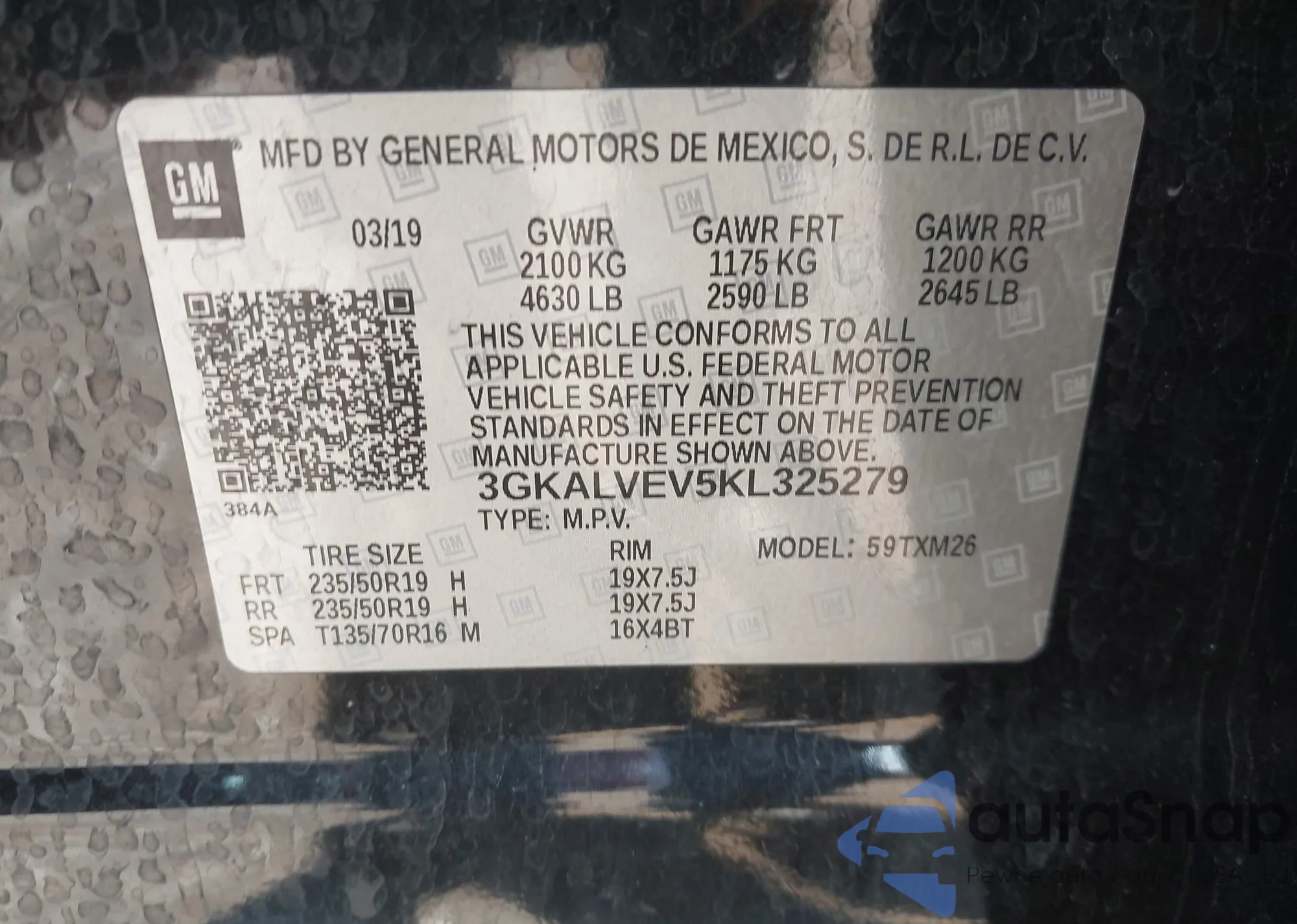 VIN: 3GKALVEV5KL325279