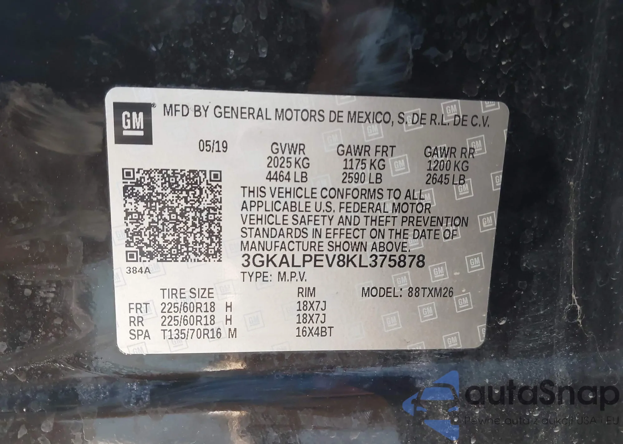 • VIN: 3GKALPEV8KL375878