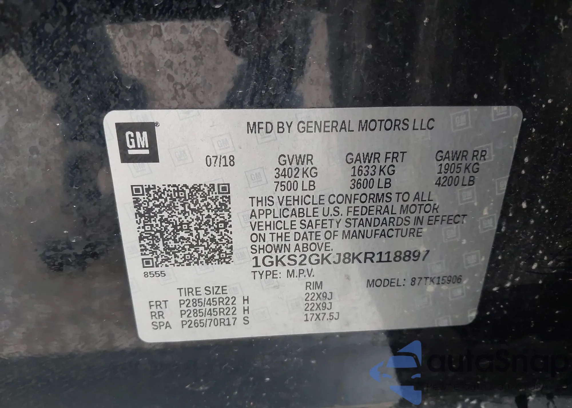 VIN: 1GKS2GKJ8KR118897