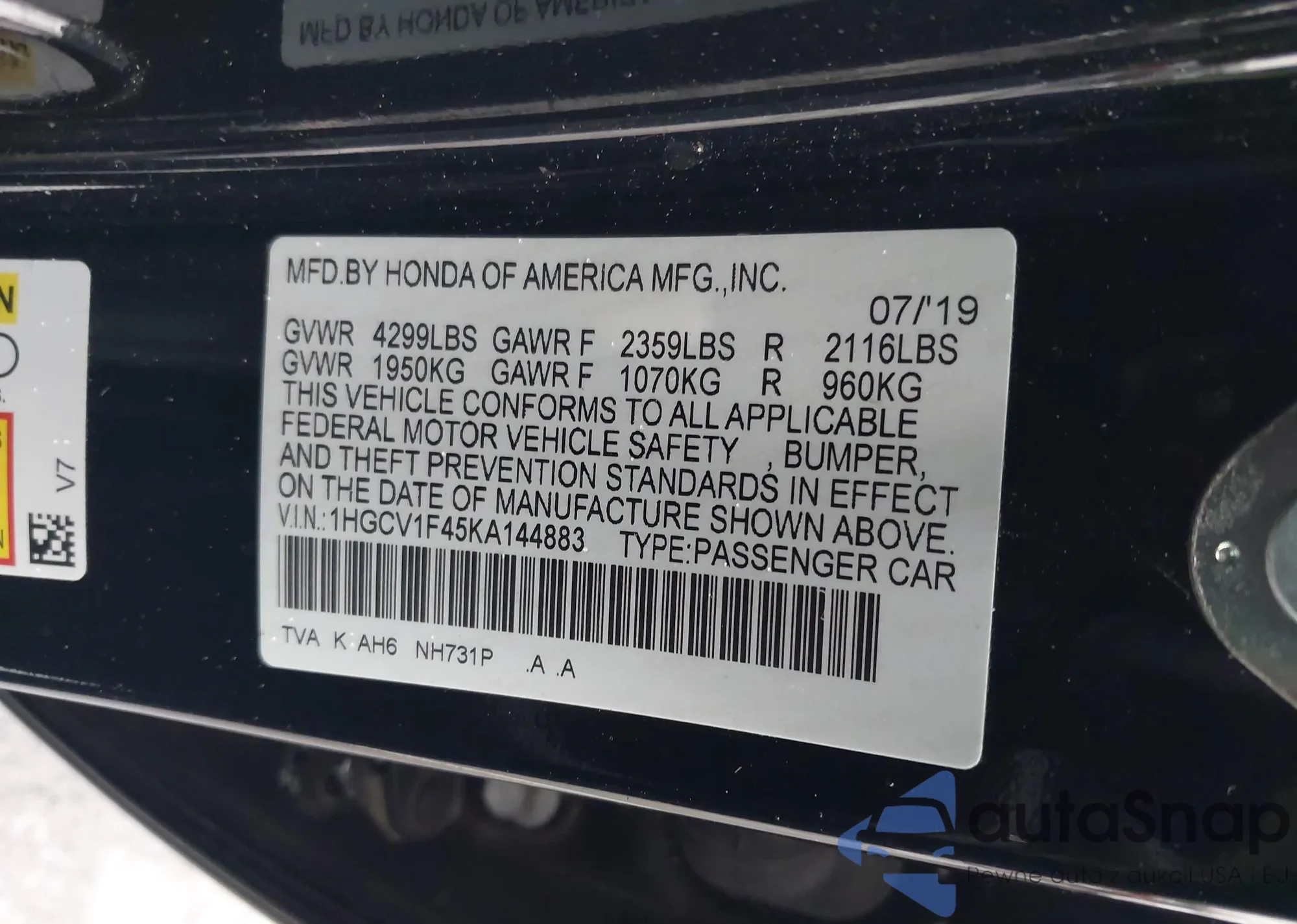 VIN: 1HGCV1F45KA144883