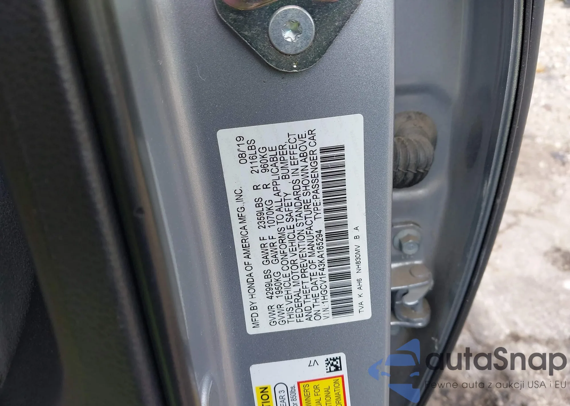 VIN: 1HGCV1F43KA165294