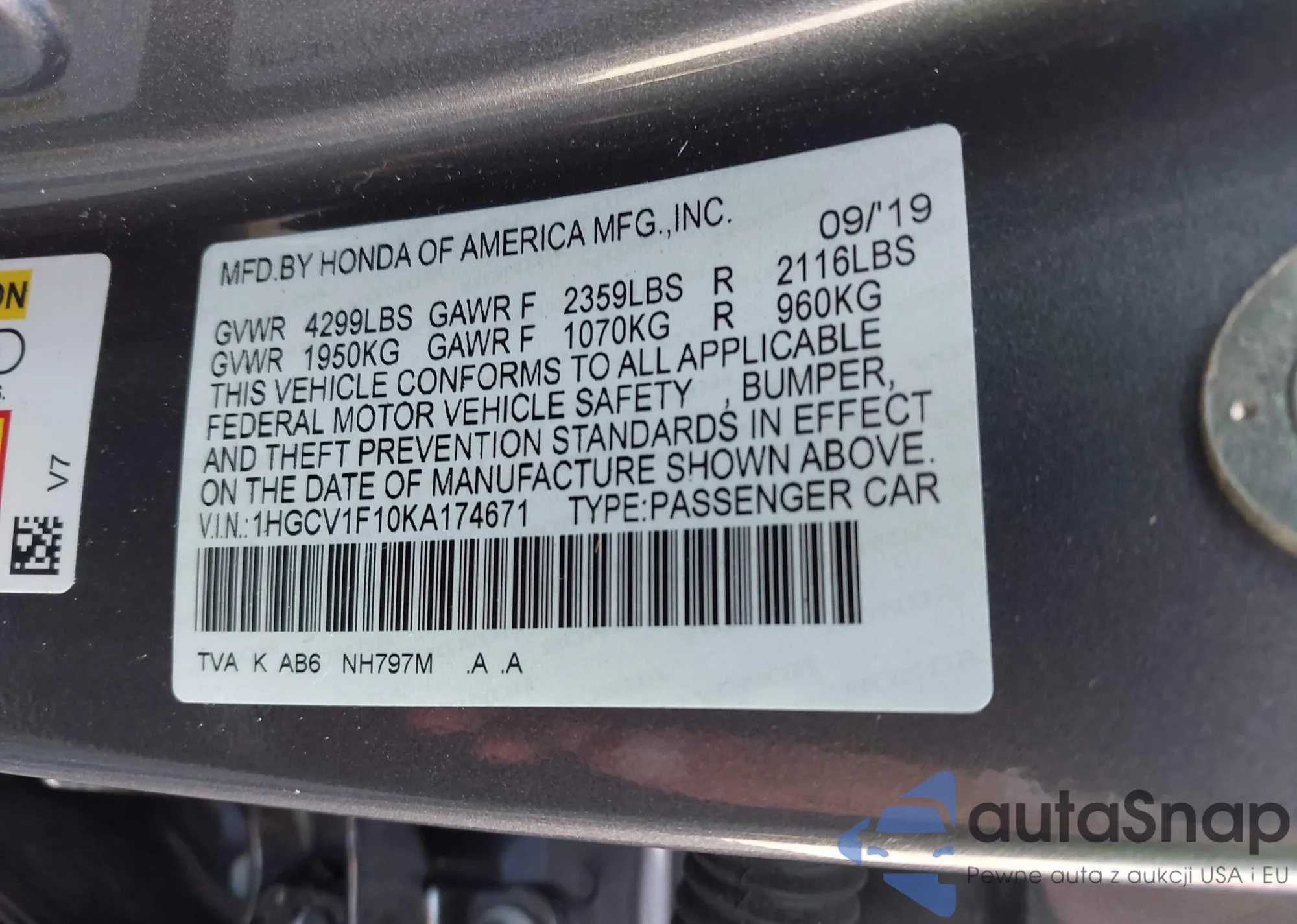 VIN: 1HGCV1F10KA174671
