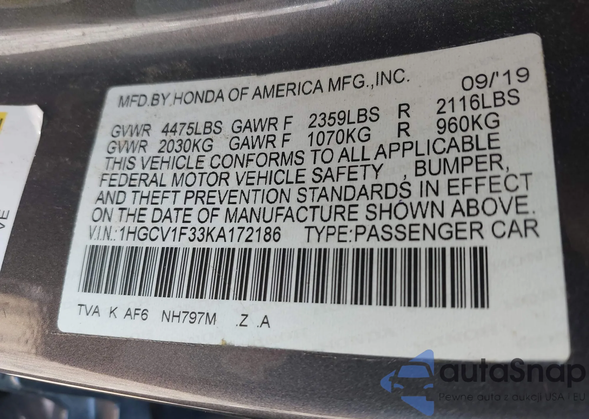 VIN: 1HGCV1F33KA172186