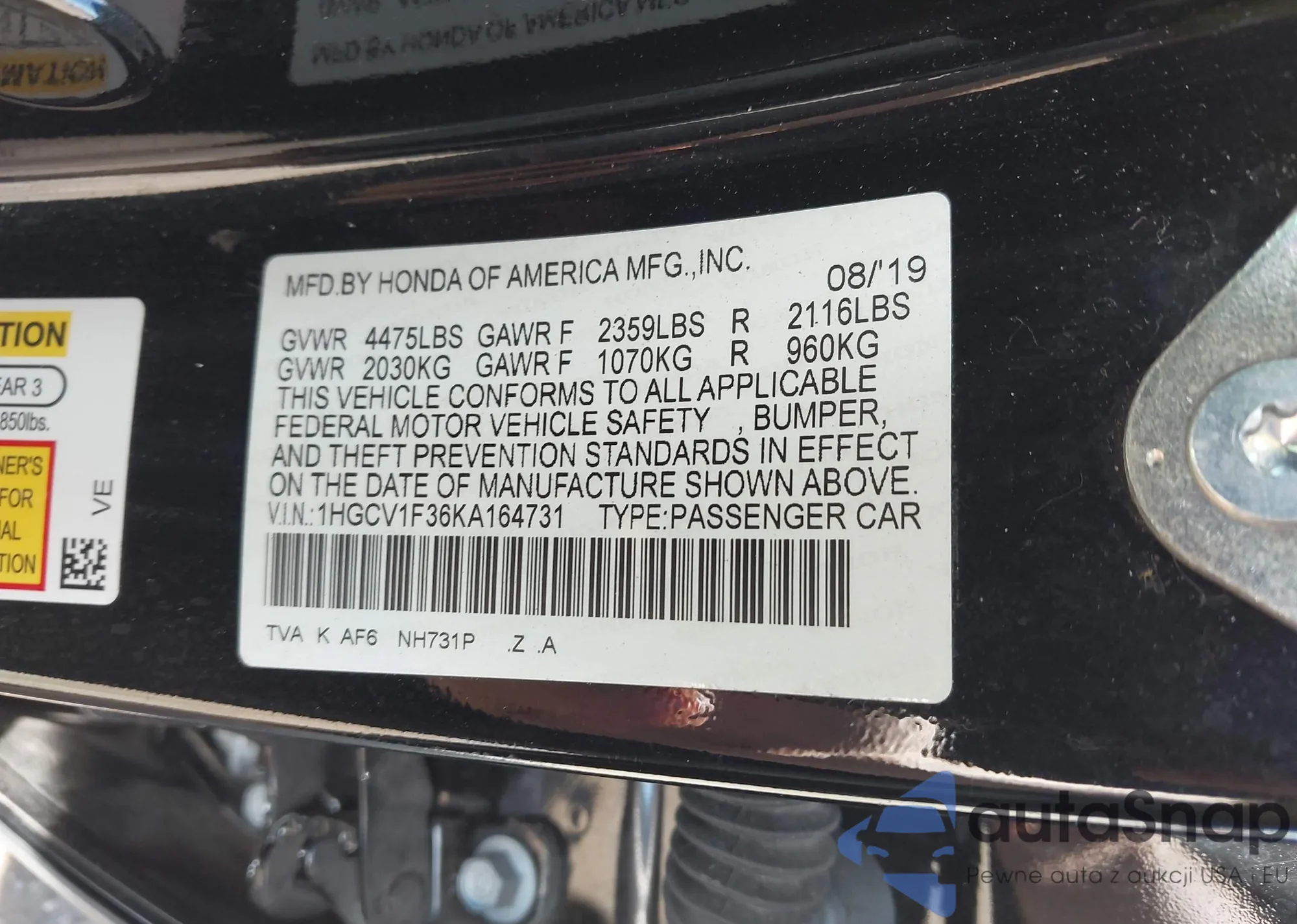 VIN: 1HGCV1F36KA164731