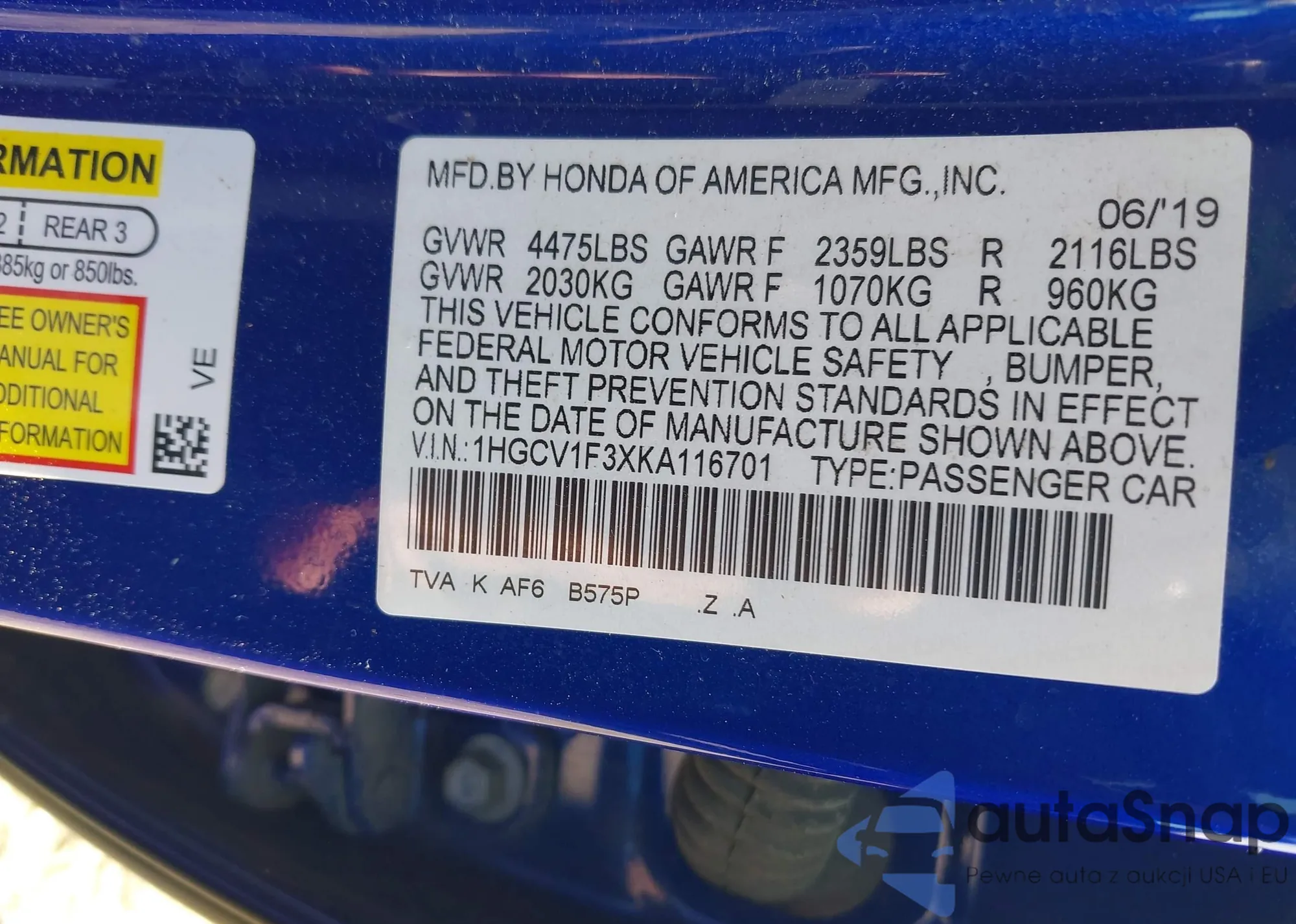 VIN: 1HGCV1F3XKA116701