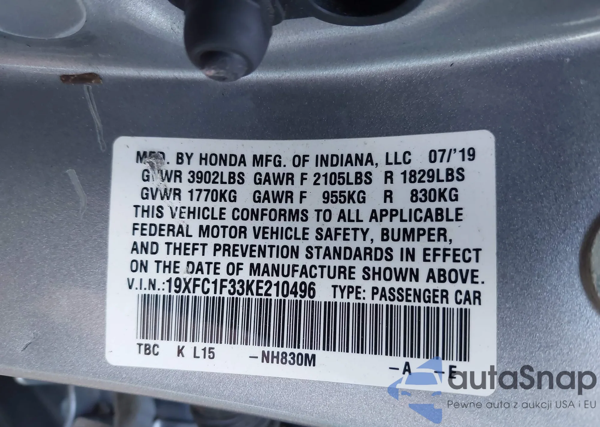 VIN: 19XFC1F33KE210496
