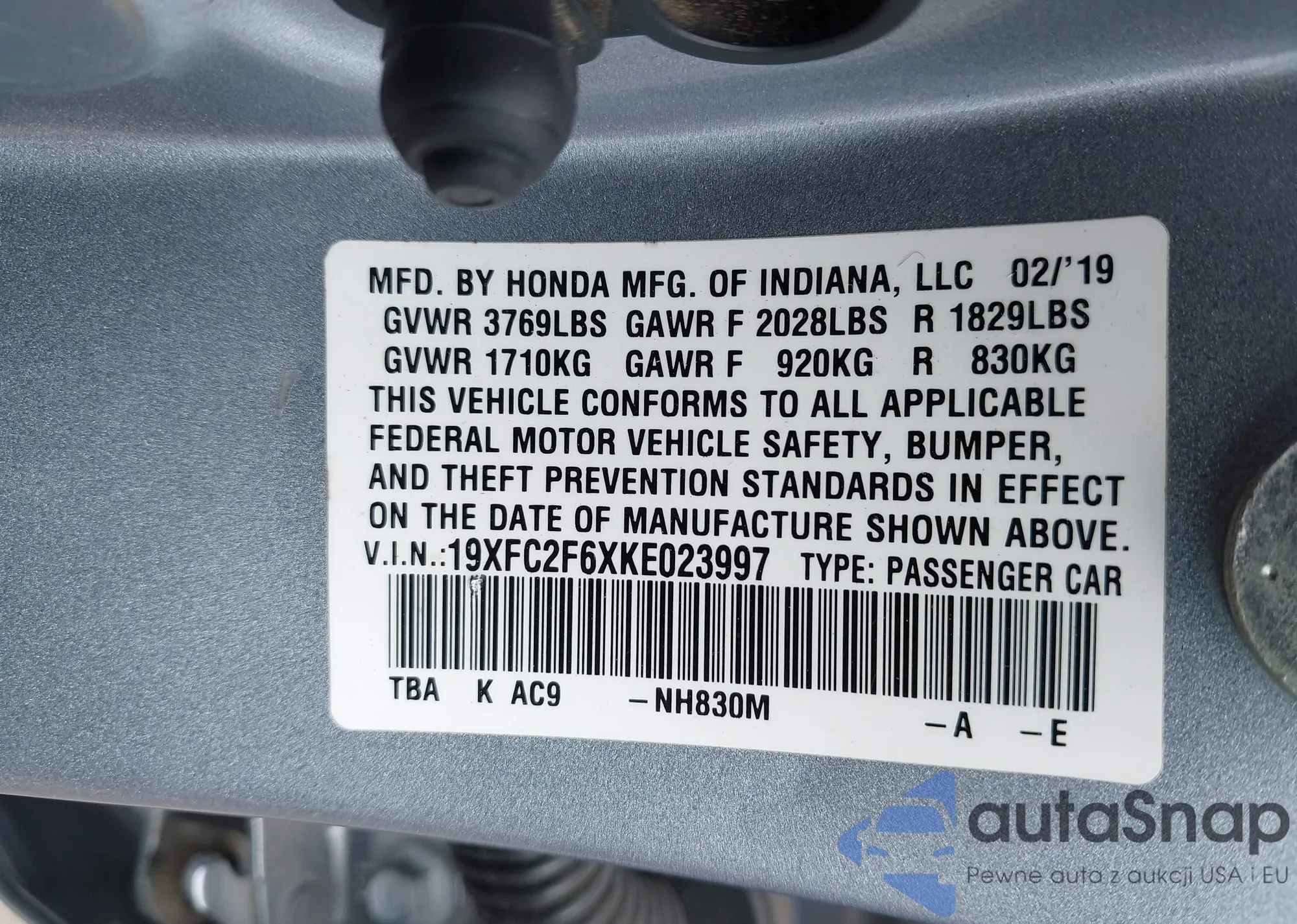 VIN: 19XFC2F6XKE023997