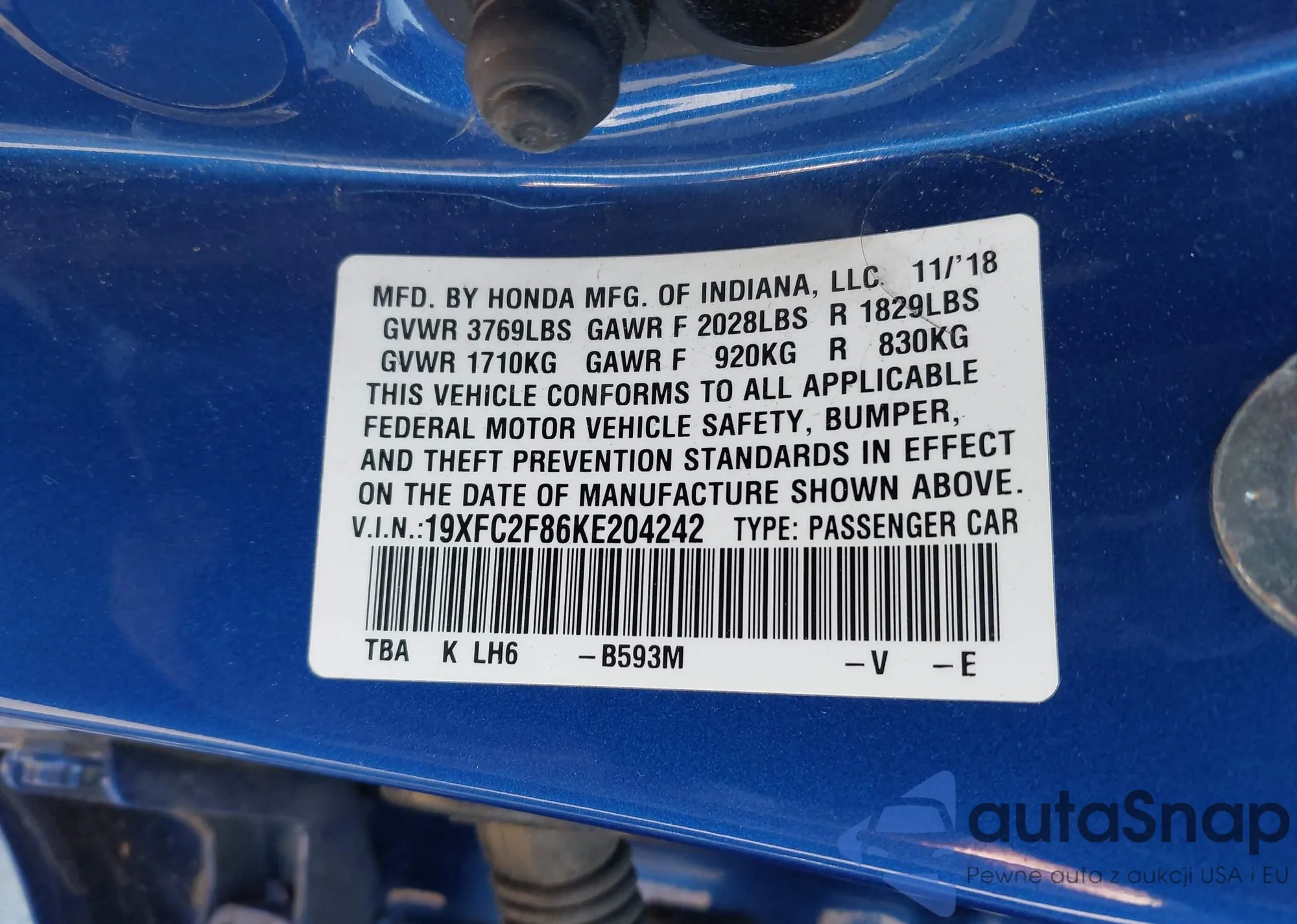 VIN: 19XFC2F86KE204242