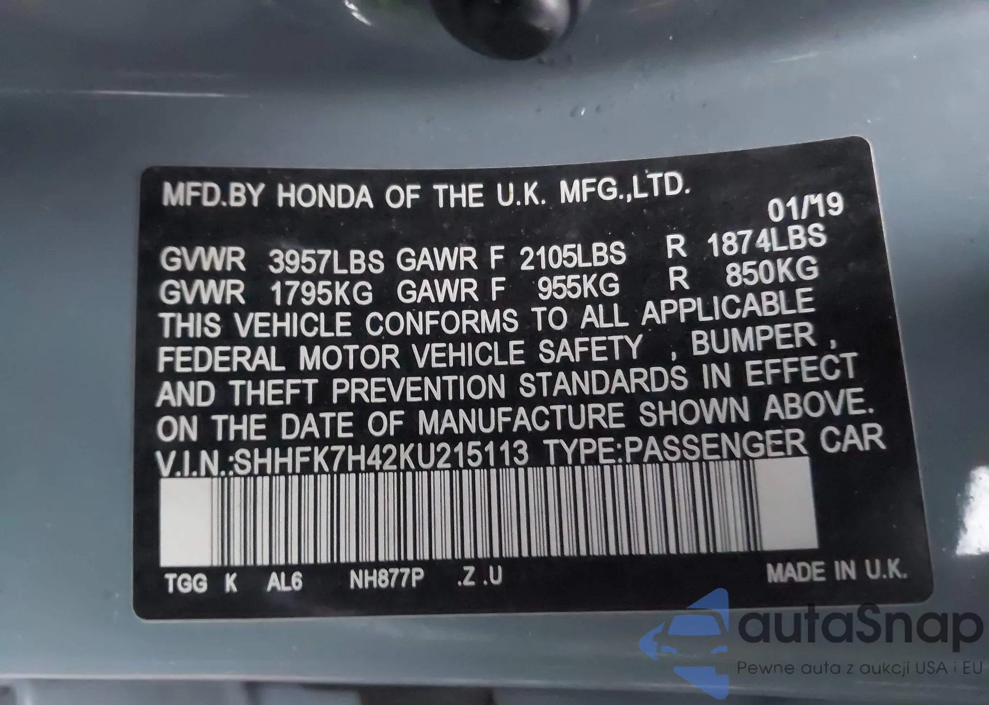 VIN: SHHFK7H42KU215113