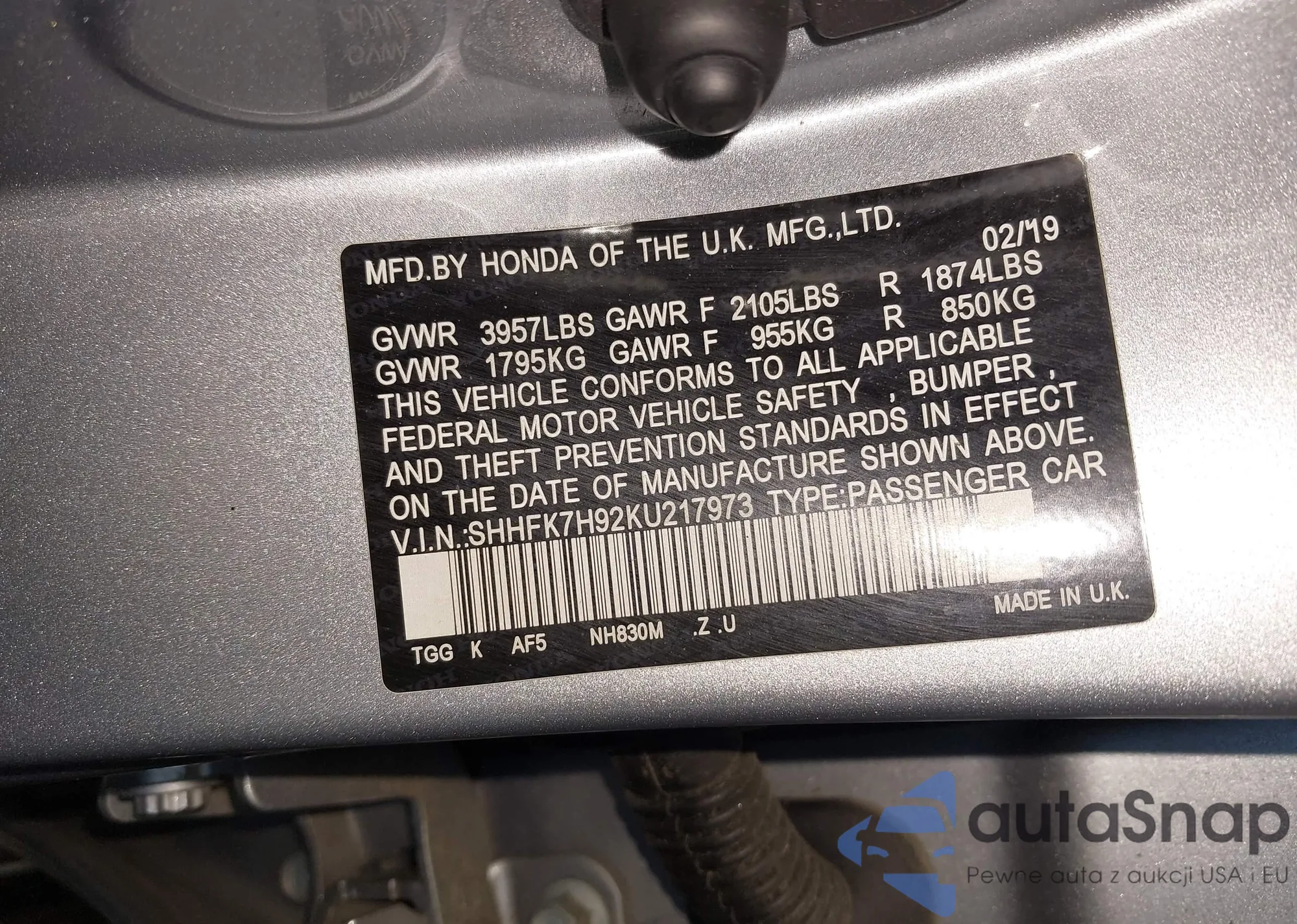 Автомобиль Honda Civic 2019 (VIN SHHFK7H92KU217973) ранее не участвовал в торгах. Документы чистые, пробег соответствует или ниже среднего по рынку. Продаётся страховой компанией — рекомендуем покупку. Доставка в порт займет около 6–8 недель.