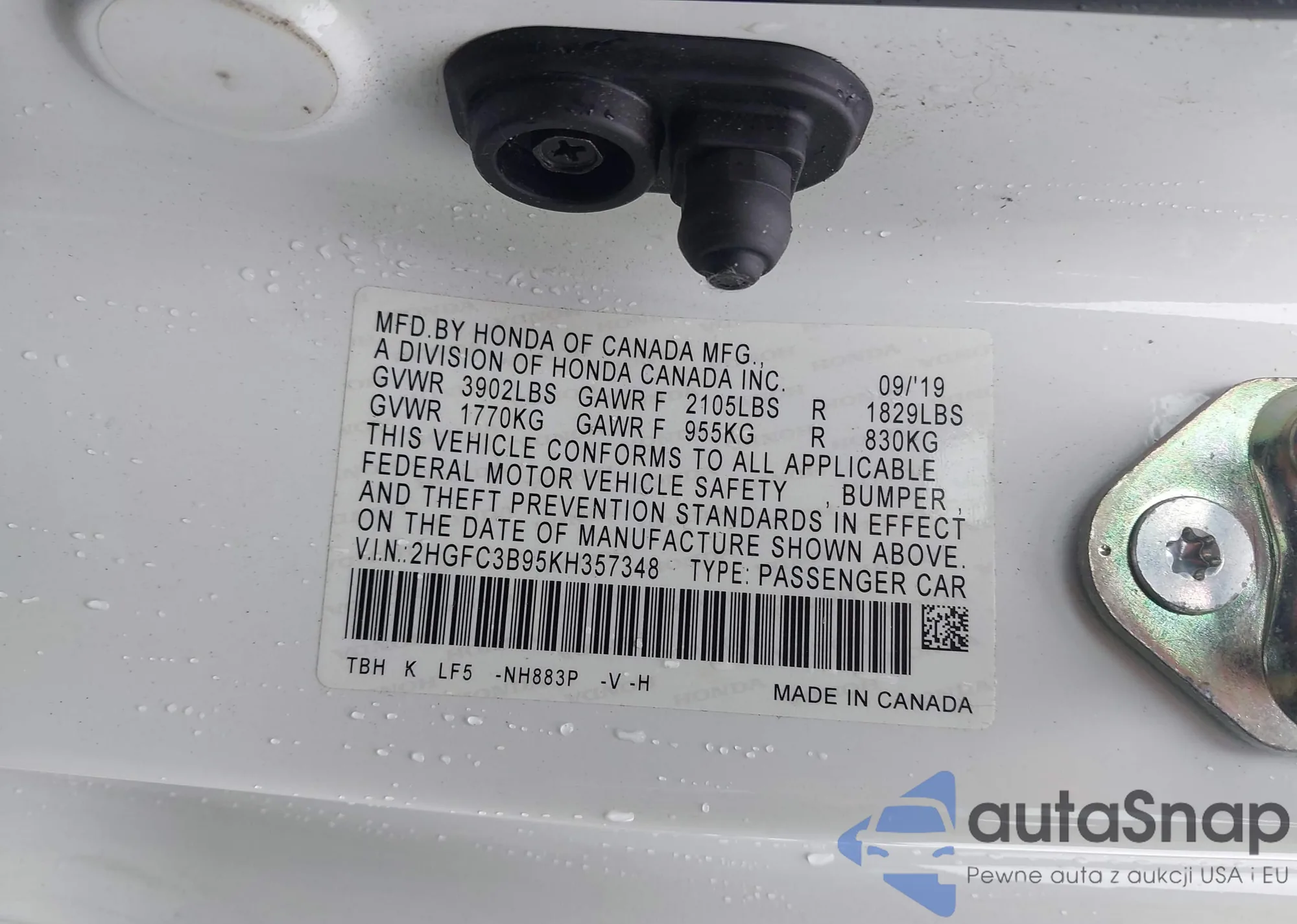 VIN: 2HGFC3B95KH357348
