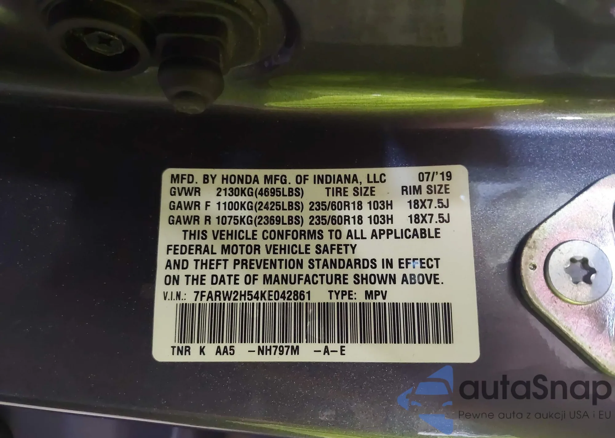 Автомобиль Honda CR-V 2019 (VIN 7FARW2H54KE042861) имеет документы, препятствующие регистрации. Могут возникнуть сложности при экспорте и регистрации. Обратитесь к экспертам AutaSnap для поиска альтернатив.