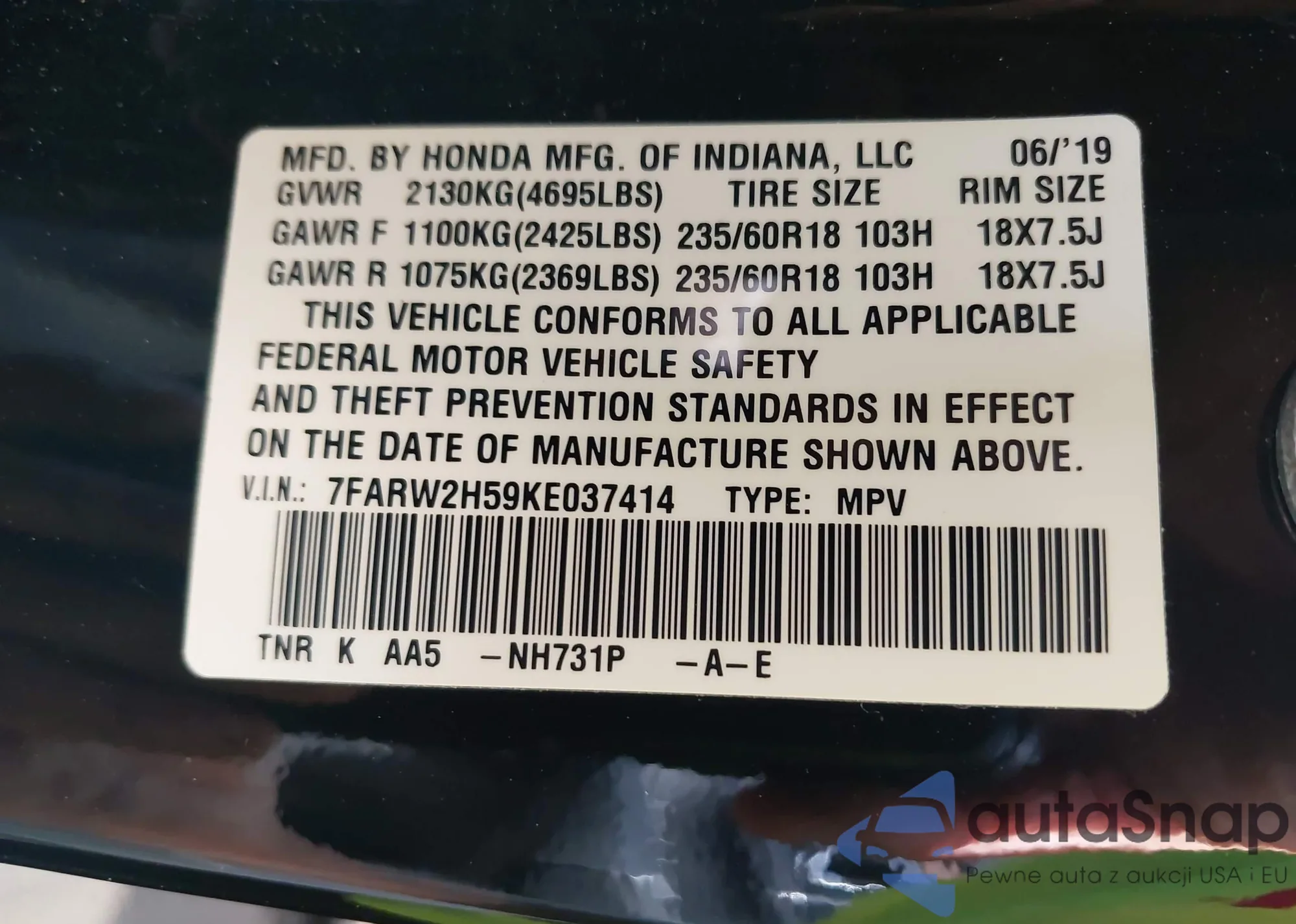 VIN: 7FARW2H59KE037414