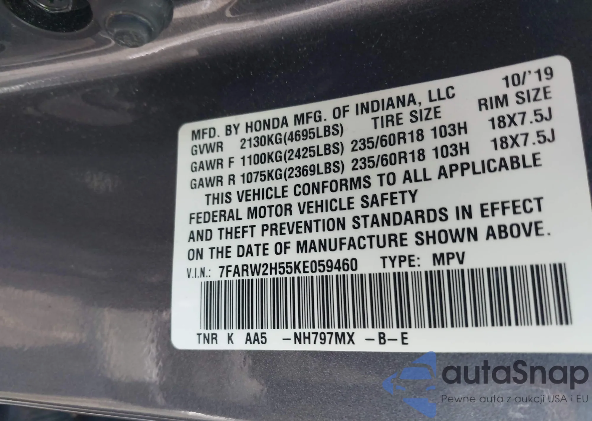 VIN: 7FARW2H55KE059460
