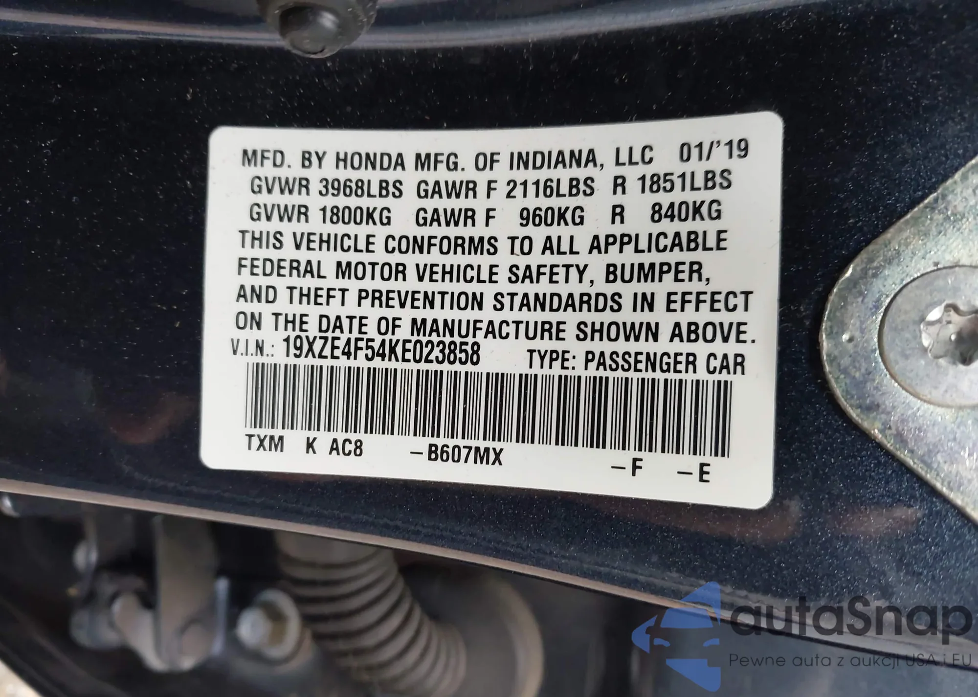 VIN: 19XZE4F54KE023858