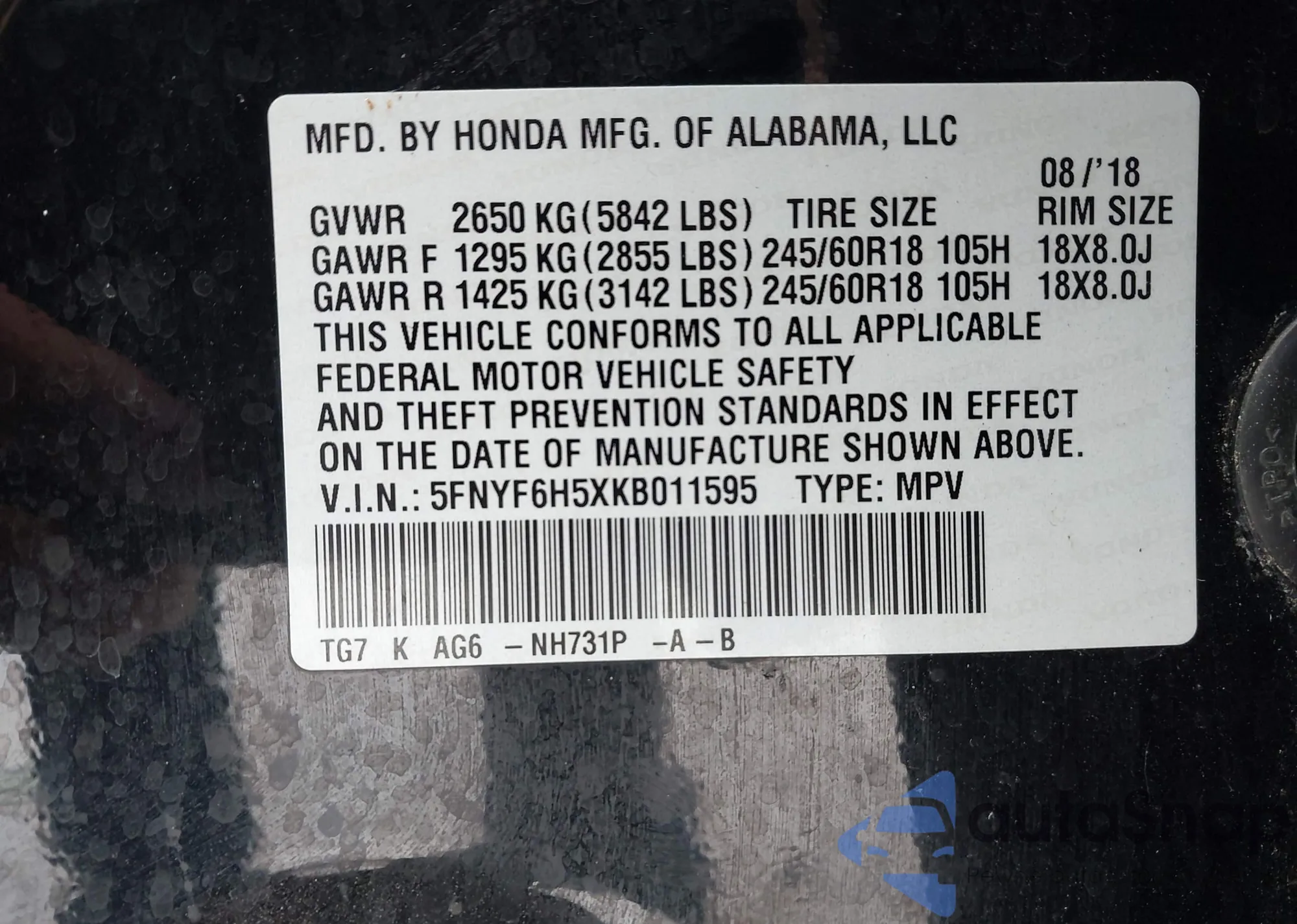 Автомобиль Honda Pilot 2019 (VIN 5FNYF6H5XKB011595) ранее не участвовал в торгах. Документы чистые, пробег соответствует или ниже среднего по рынку. Продаётся страховой компанией — рекомендуем покупку. Доставка в порт займет около 6–8 недель.