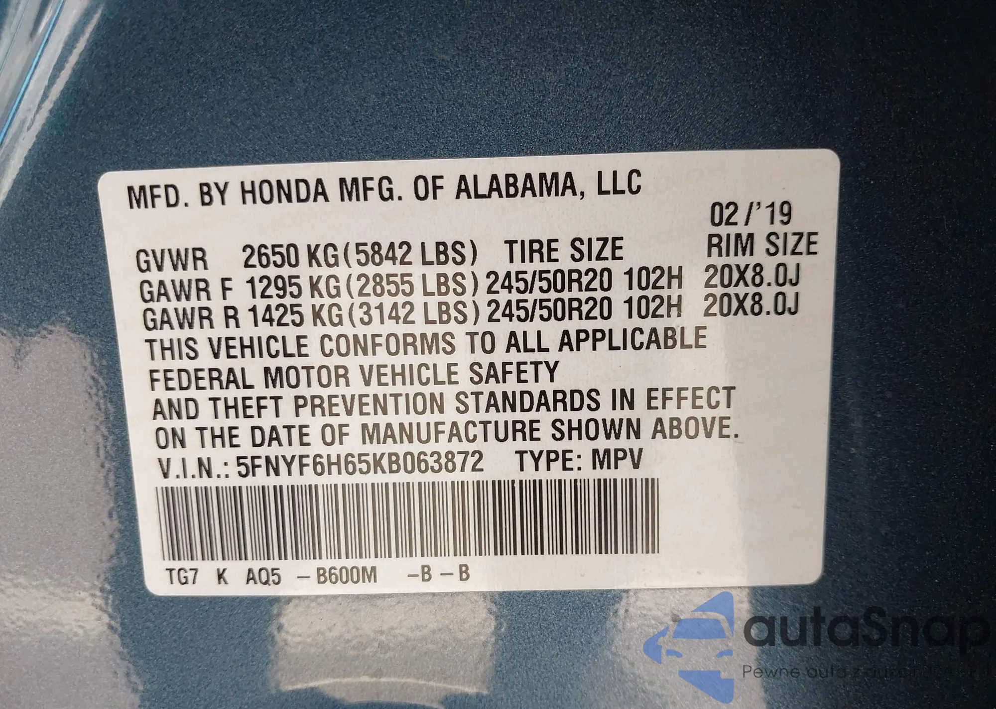 Автомобиль Honda Pilot 2019 (VIN 5FNYF6H65KB063872) ранее не участвовал в торгах. Документы чистые, пробег соответствует или ниже среднего по рынку. Продаётся страховой компанией — рекомендуем покупку. Доставка в порт займет около 6–8 недель.