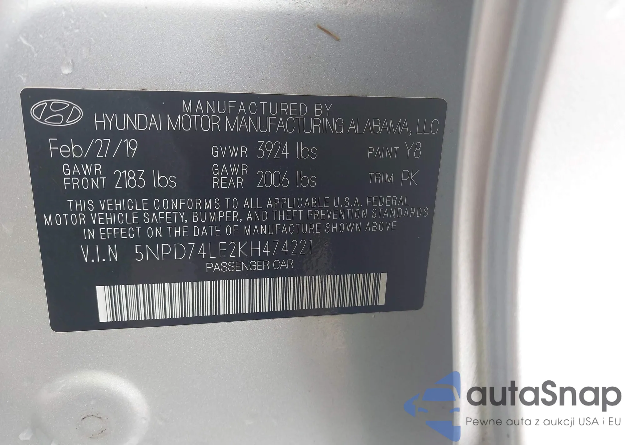 VIN: 5NPD74LF2KH474221