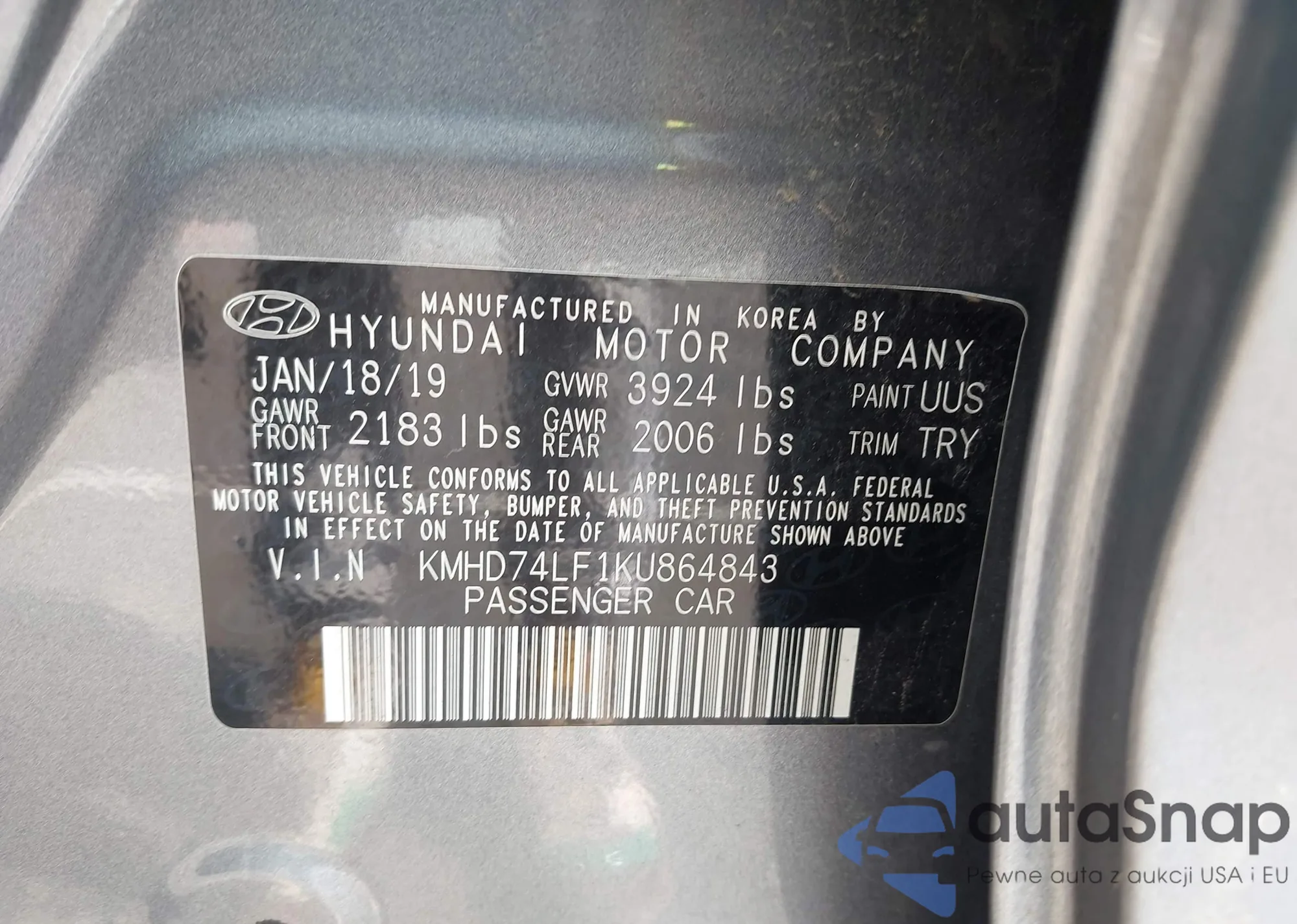 VIN: KMHD74LF1KU864843