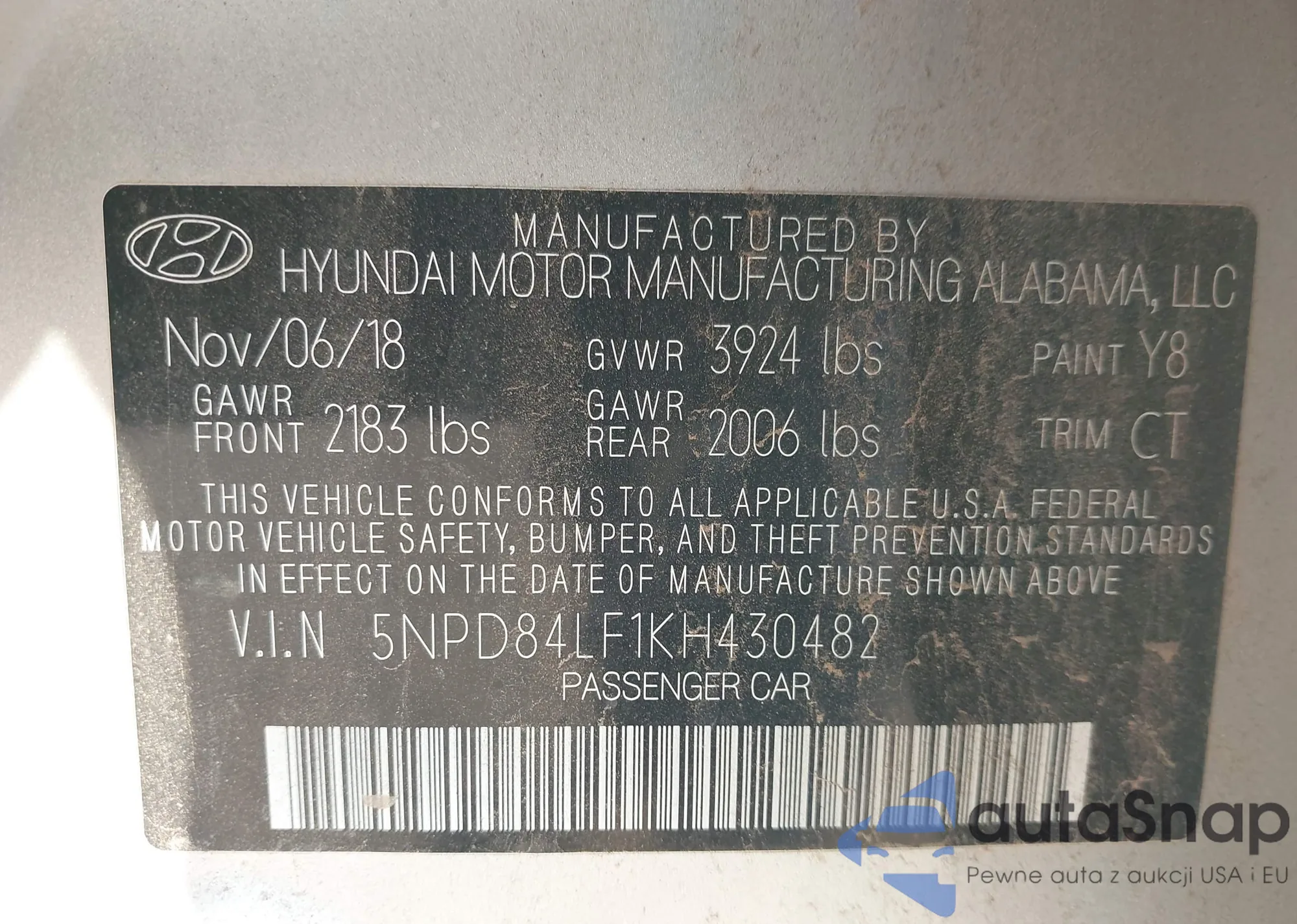 VIN: 5NPD84LF1KH430482