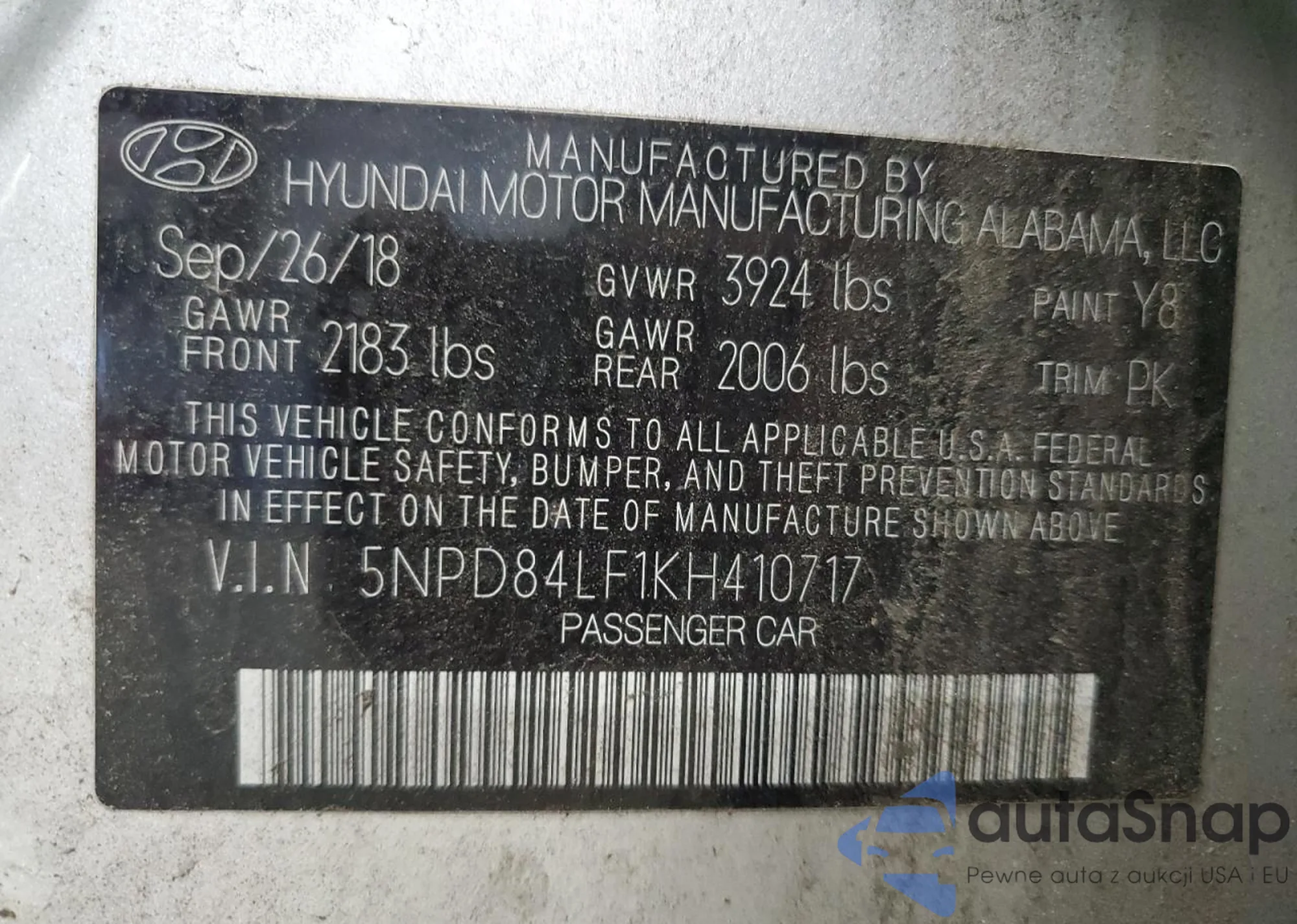VIN: 5NPD84LF1KH410717