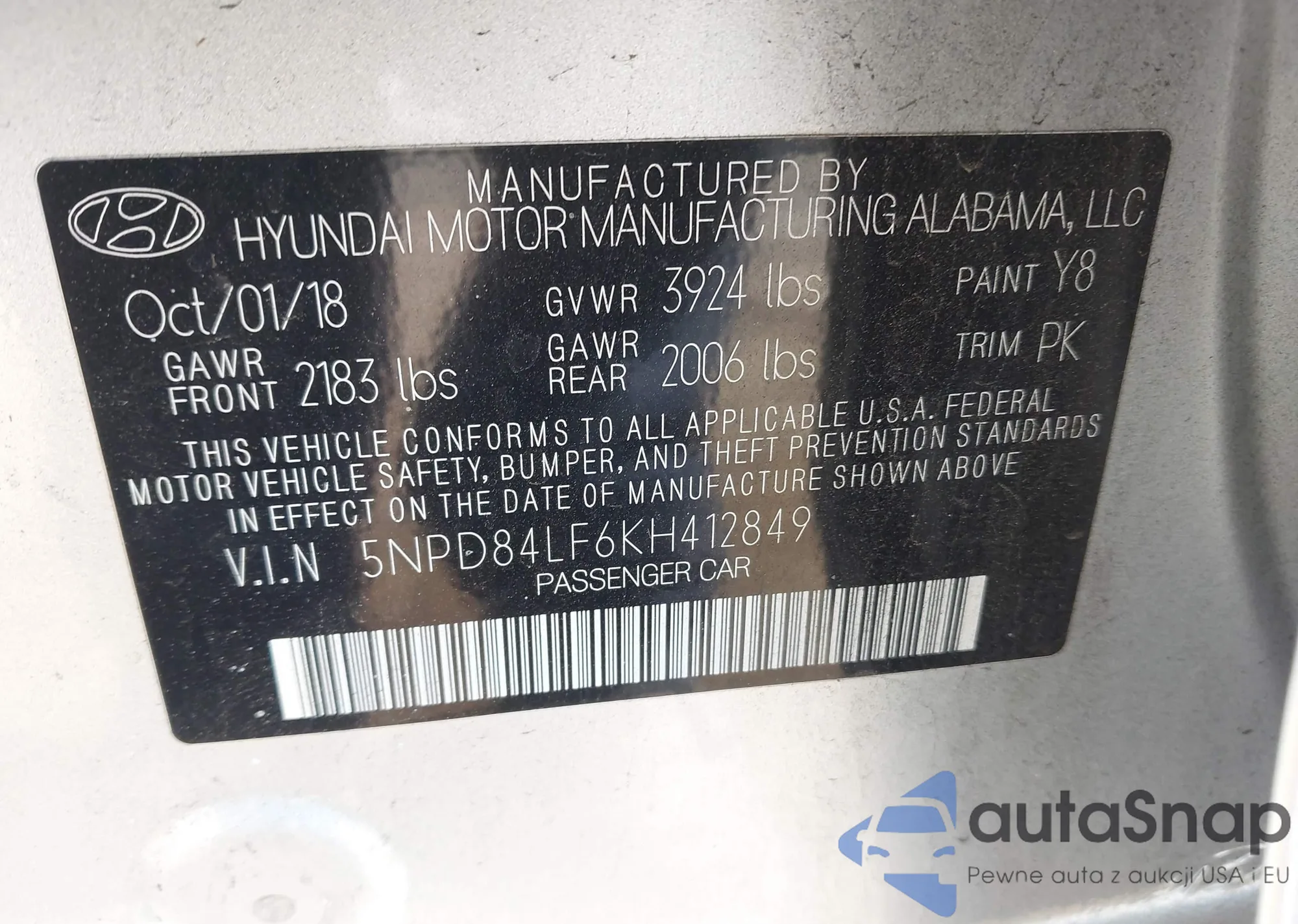 VIN: 5NPD84LF6KH412849