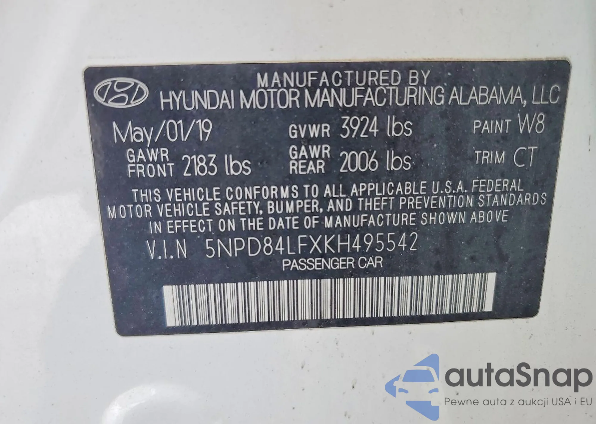 VIN: 5NPD84LFXKH495542