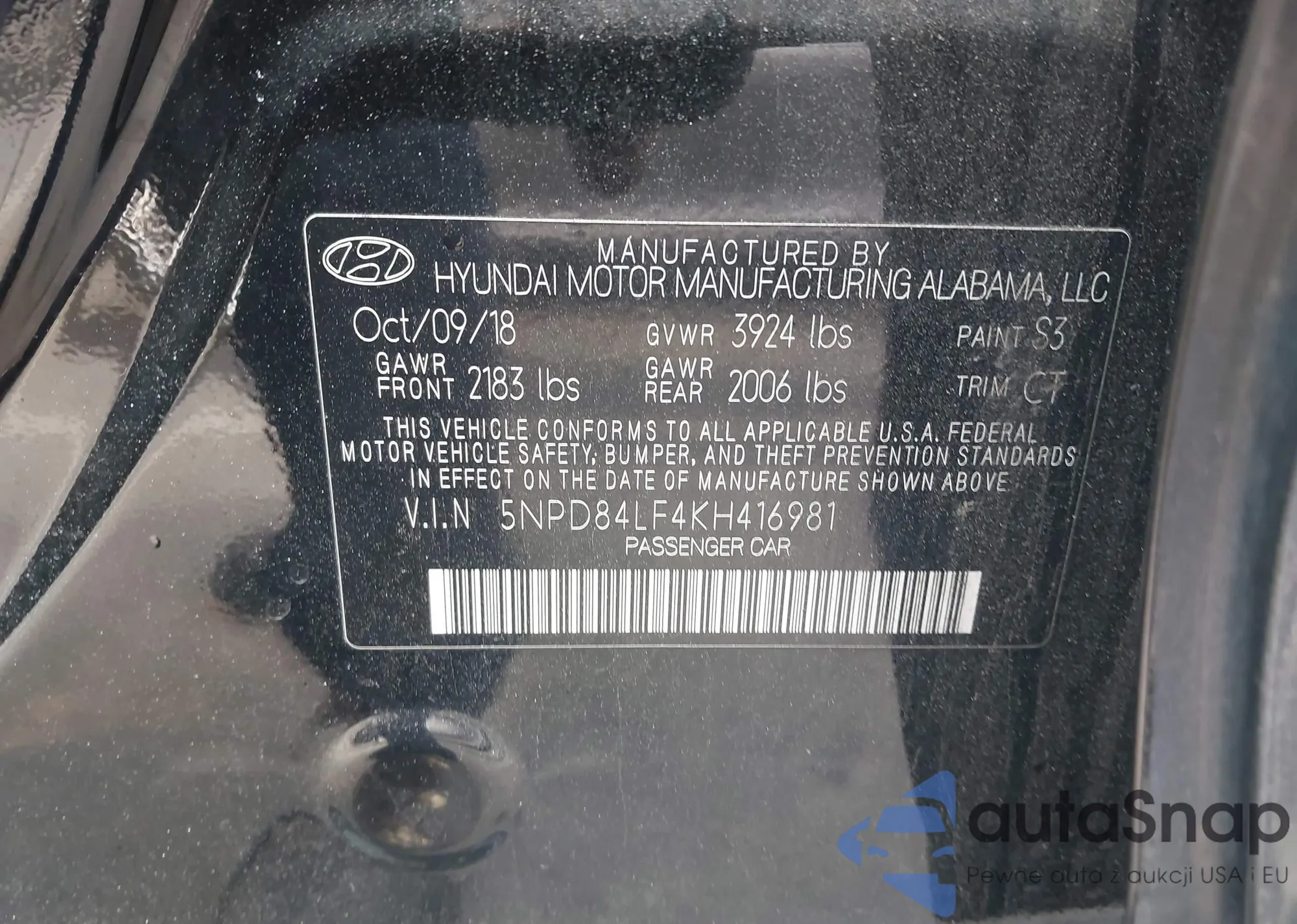 • VIN: 5NPD84LF4KH416981