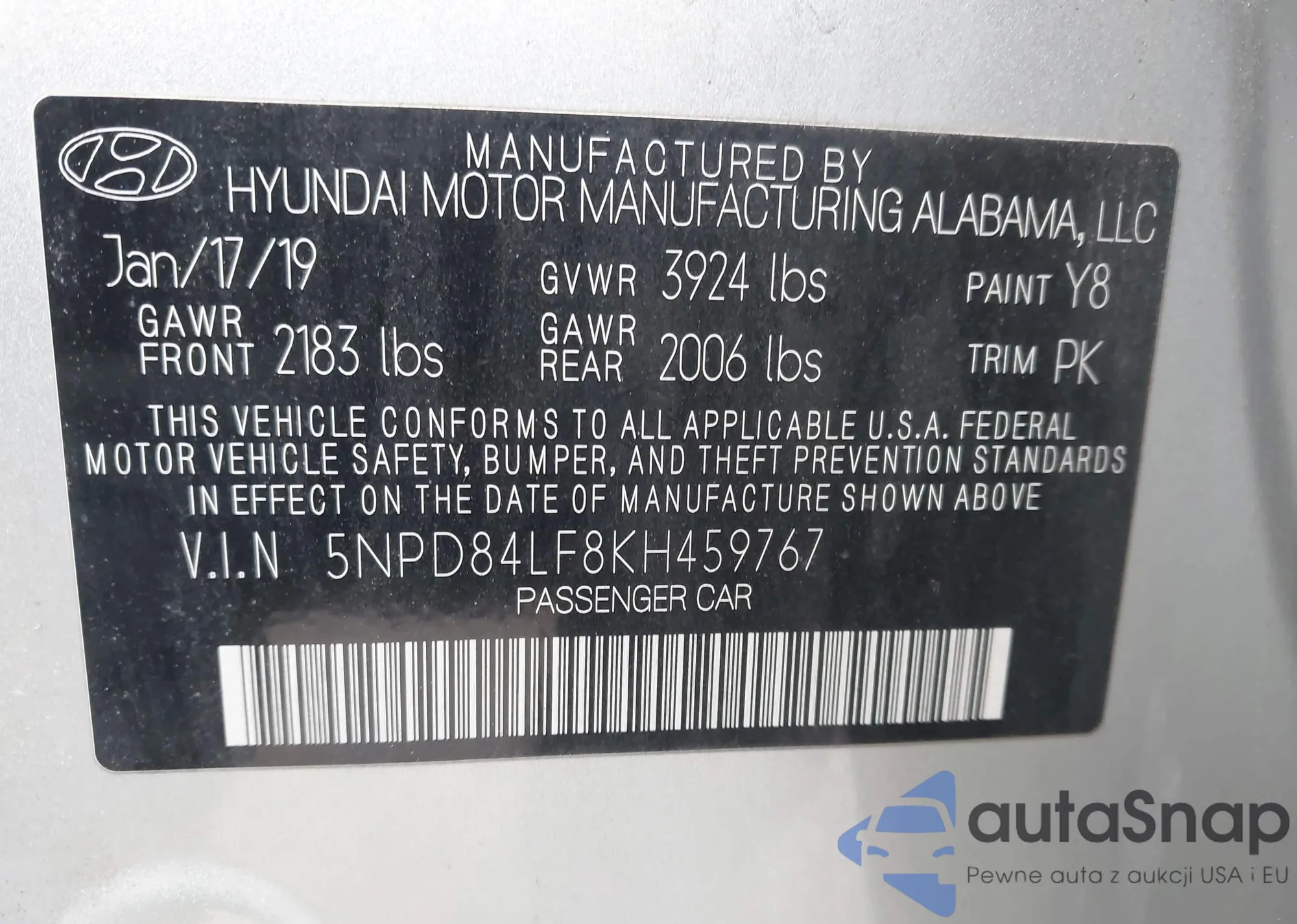 • VIN: 5NPD84LF8KH459767